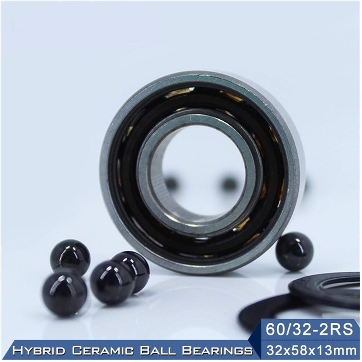 BearingsBearingWHAT IS A HYBEID CERAMIC BEARING?A ceramic hybrid bearing is a combination of ceramic balls and bearing quality steel rings.Which combine hardened steel rings with rolling elements made of high-performance ceramic materials, are an increasingly popular option for demanding applications.TECHNICAL SPECSModel: 60/32 RSStructure: Deep Groove BallMaterial: Hybrid CeramicMaterial: Bearing SteelBore Dia (d): 32 mmOuter Dia (D): 58 mmWidth (B): 13 mmClosures: Sealed (2RS)Lubrication: GreaseClearance: C0Dynamic Load Rating (Cr) (Newtons): 15000Static Load Rating (Cor) (Newtons): 9150Weight: 0.127 kgQuantity: 1 Lot = 1 PCWidely used in household appliances, garden machinery, outdoor vehicles, industrial production, etc. Suitable for skateboards, longboards, inline skates, scooters, robots, ship rudder axles, etc.Features: small friction, fast speed, smooth, low noise.