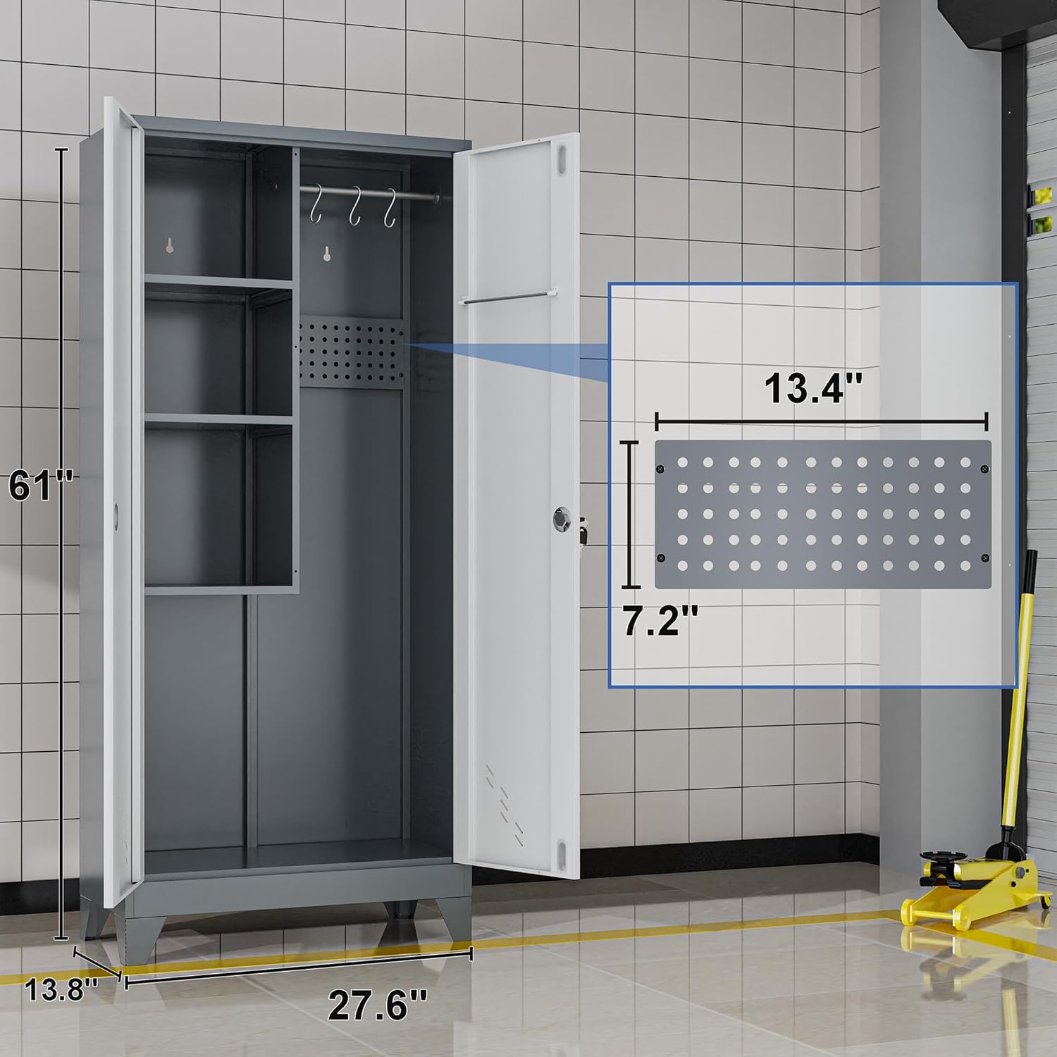 | Storage Options | Partitions, Overall Space, Hanging Rod, Pegboard |