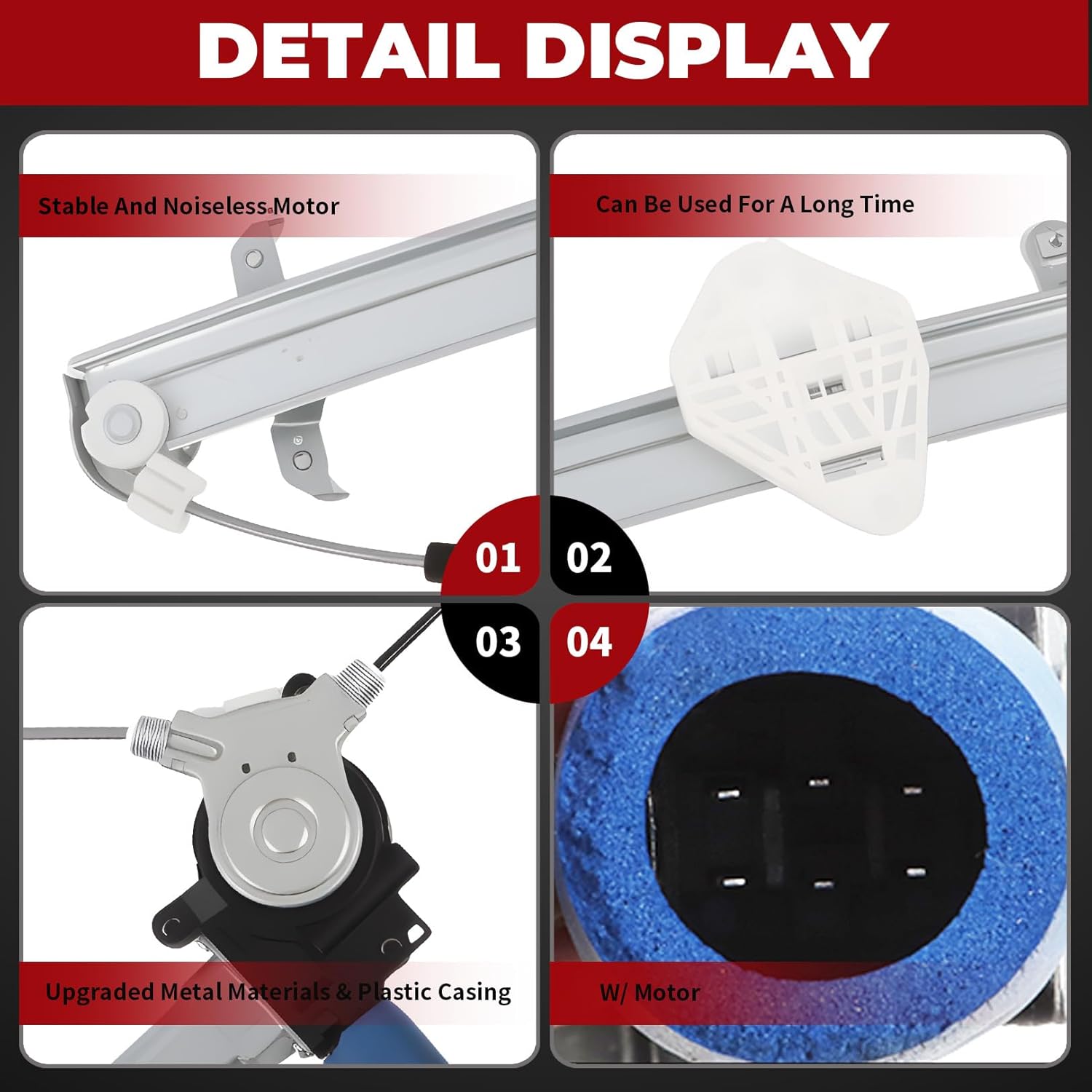 Fitment: Power window regulator compatible with Legacy 2015Power window regulator compatible with Legacy 2016Power window regulator compatible with Legacy 2017Power window regulator compatible with Legacy 2018Power window regulator compatible with Legacy 2019Power window regulator compatible with Outback 2015Power window regulator compatible with Outback 2016Power window regulator compatible with Outback 2017Power window regulator compatible with Outback 2018Power window regulator compatible with Outback 2019Replace Part Number: 61041AL010 61041AL01APackage Includes: 1*Front left driver side power window regulator with motor