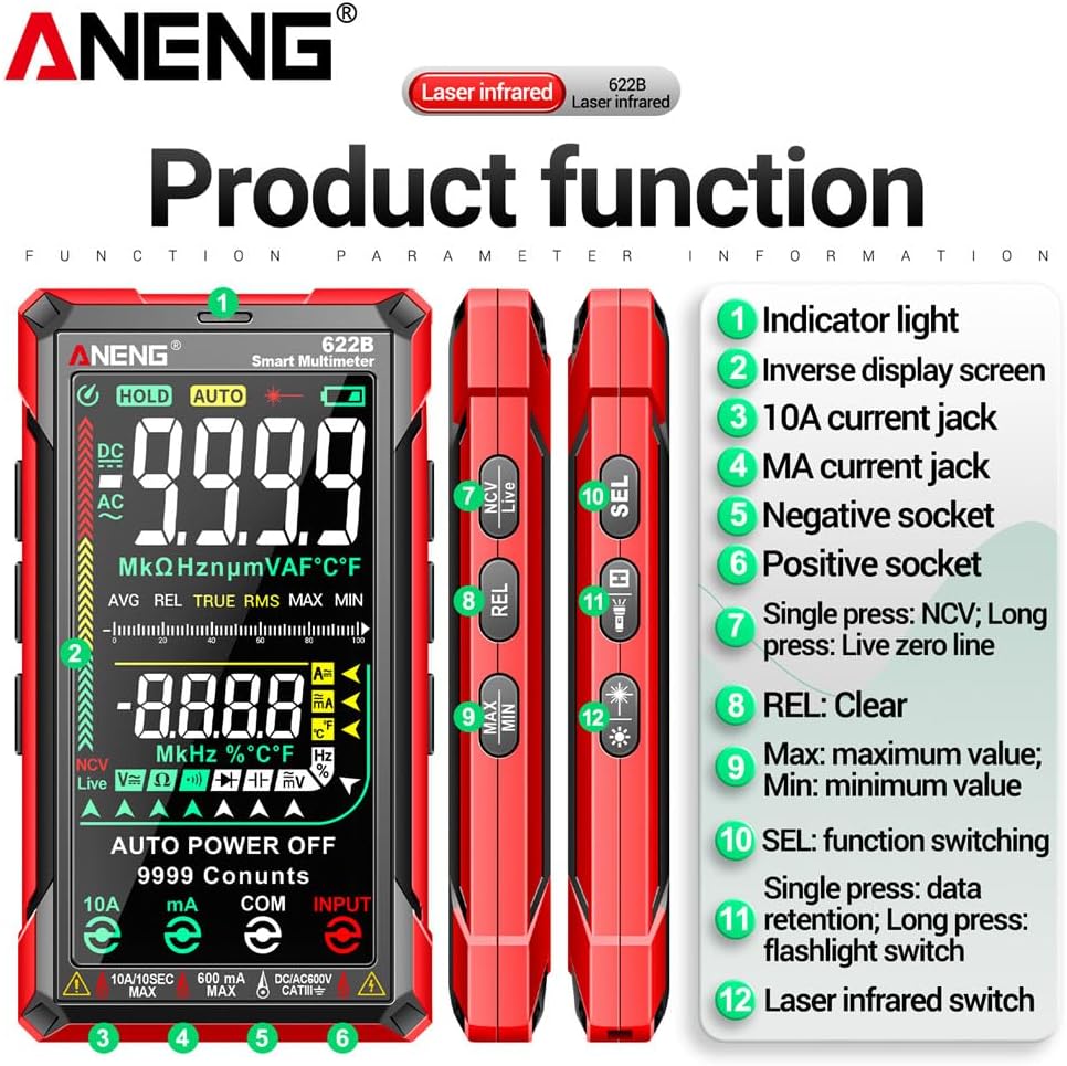 Specification:DIY Supplies: ELECTRICALDisplay Type: Digital displayModel Number: Digital Smart MultimeterSupervision display: "OL" or "-OL".Sampling time: about 3 times/second.Input jack LCD indication.Automatic shutdown time: 15 minutesPower supply: 1.5V AAA battery x 4 (not included)Display (LCD): 9999 countsRanging: automatic/manualShell material: ABSSize: 146x80mm/5.74x3.14inch