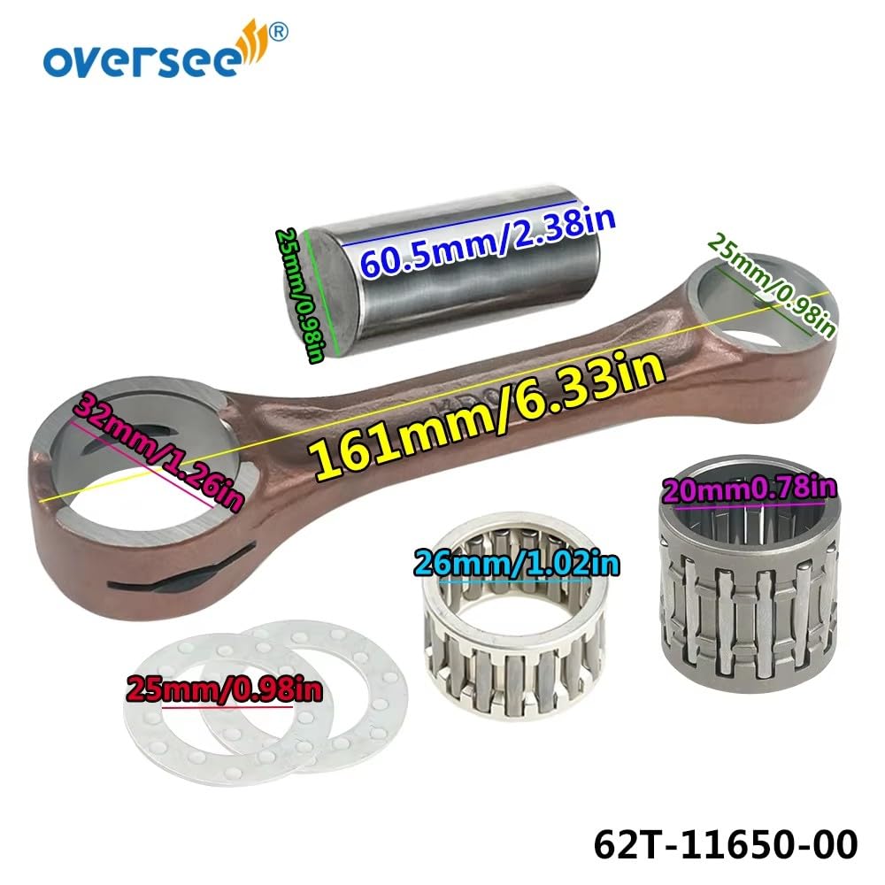 CONNECTING ROD FOR YAMAHA Waverunner 650 701 760 1200cc 1980-2013 Ref.OEM number: 62T-11651-00 / 64X-11651-01 2 Stroke Rod Kits Include:- Connecting Rod Big End Bearing Thrust Washers Crankshaft Pin Small End Bearing Dimensions:- centre to centre 125mm s/e - gudgeon pin 20/25mm diameter crank pin 25mm diameter width 20mm