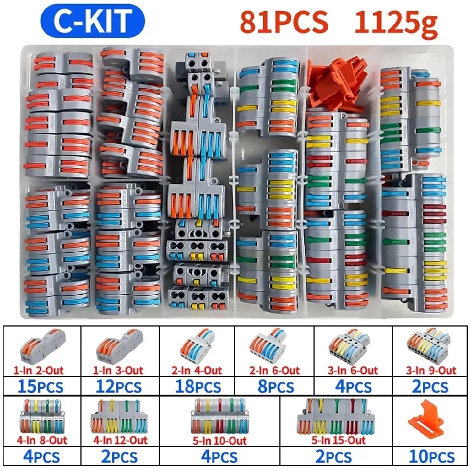 64/81/142 PCS Mini Fast Wiring Cable Connectors Universal Compact Splitter Electrical Conductors Push-in Home Block(C kit (81pcs))