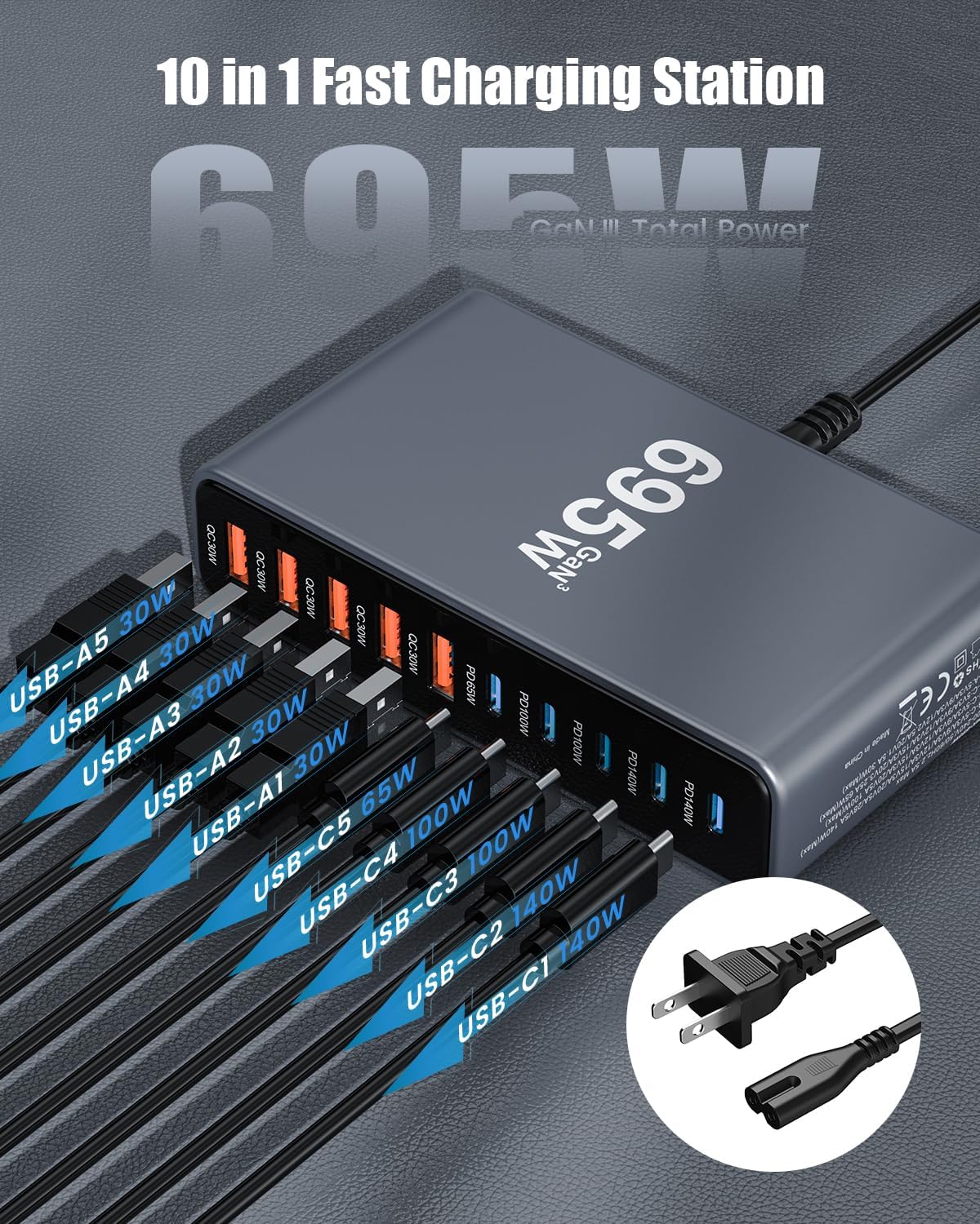 | Additional Features | 695W Fast Charging, Charging Indicator, Compatible with Steam Deck, Laptops, Tablets, Smartphone, and Smartwatches, Fast Charging, Lightweight Design |