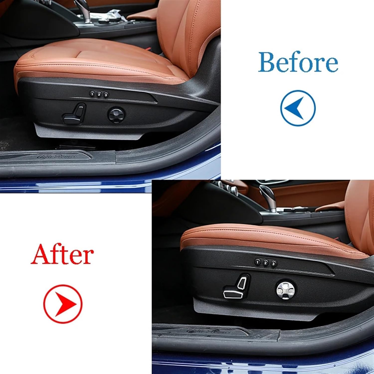 6pcs ABS Chrome Seat Adjustment Button Cover Trim For alfas romeos Giulia Stelvio 2017 2018 2019 2020 Auto AccessoriesItem:Seat Adjustment Button CoverMaterial: Made Of High Quality ABSFor alfas romeos Giulia 2017-2020Color:as pictureEasy install,back withadhesive tape.If you have any question pls contact us for help