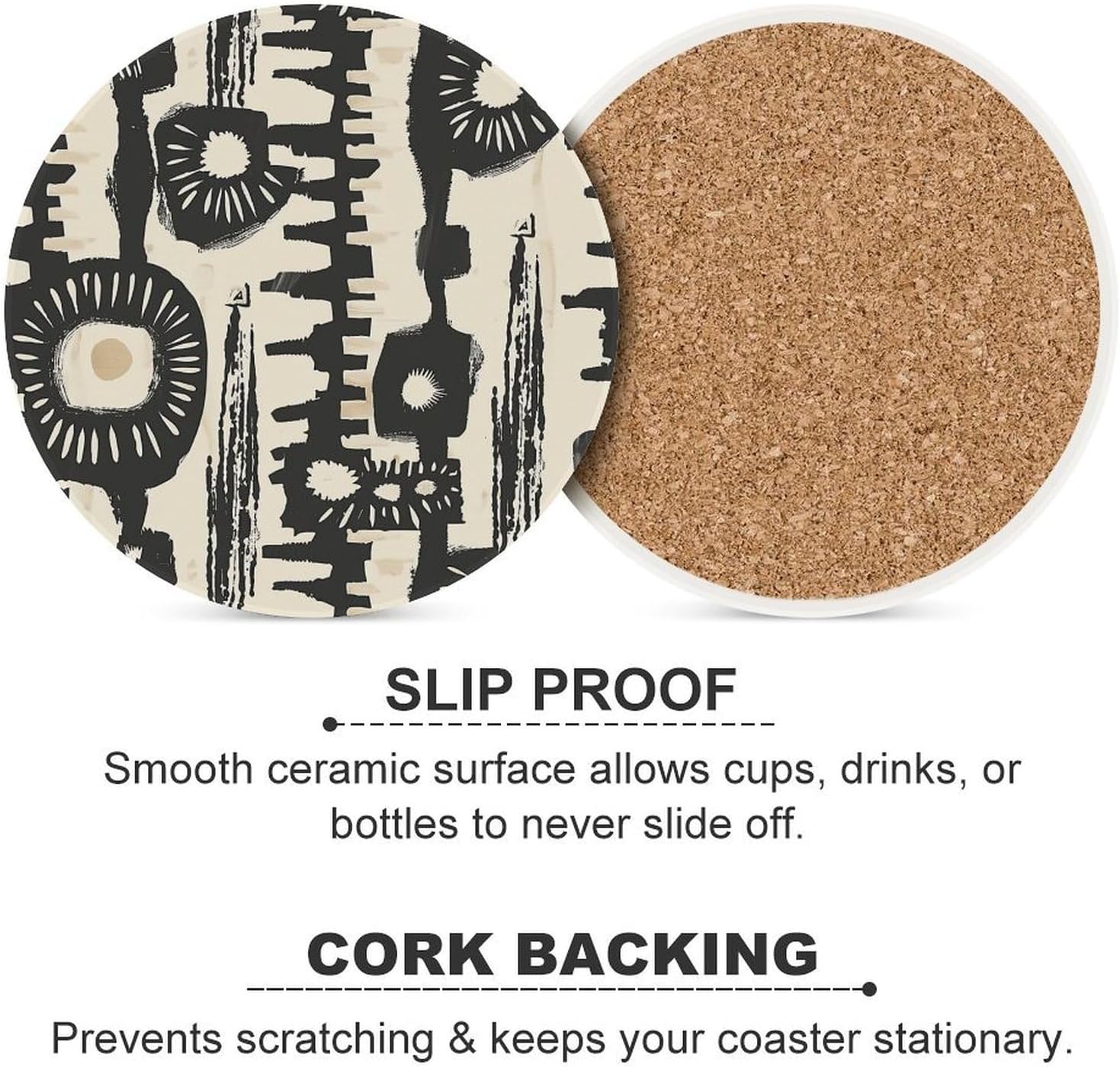 Transform your daily hydration into a stylish and protective ritual with our Cute Ceramic Coasters with Cork BottomDrink Coasters for Home Cup Mats for Table Rustic Coasters Round Coasters Unique Coasters Vintage Coasters Art Teacher Gifts Round Drink Coasters for Hot Cups Funny Coasters Outdoor Coasters for Patio Table Waterproof Bar Coasters Non-Slip Table Coasters Absorbent Coasters Ceramic Car Coasters for Cup Holders Ceramic Cup Holder Coaster for Car Cool Coasters Pretty Coasters White Wine Coasters Housewarming Gifts CoastersSuitable Size:Heat resistant coasters for drinks arr crafted from ceramic and finished with a natural cork base, each coaster is as practical as it is sustainable. The 4.1-inch round size is perfectly proportioned to sit under a variety of glassware - from your favorite coffee mug and ceramic teacup to tall glasses of iced tea or bottles of beer.Double Protection:The heat-resistant ceramic top acts as a shield, guarding your cherished wood tables, kitchen countertops, and office desks against hot beverages, unsightly water rings, and condensation . Meanwhile, the soft, non-slip cork bottom plays a dual role: it prevents the tea coasters from sliding around when you reach for your drink, and it ensures your furniture remains free from scratches and scuffs.Multi Purpose: Whether you're decorating a coffee table in the living room, adding a functional touch to a home office, or setting up a bar cart for entertaining, these decorative coasters are the perfect blend of utility and subtle style.Material: Ceramic & CorkSize: 4.1 inches (Diameter)Care: Wipe clean with a damp cloth.Designed for the modern home, these heat resistant cup mats blend functionality with minimalist aesthetics to keep your surfaces pristine.