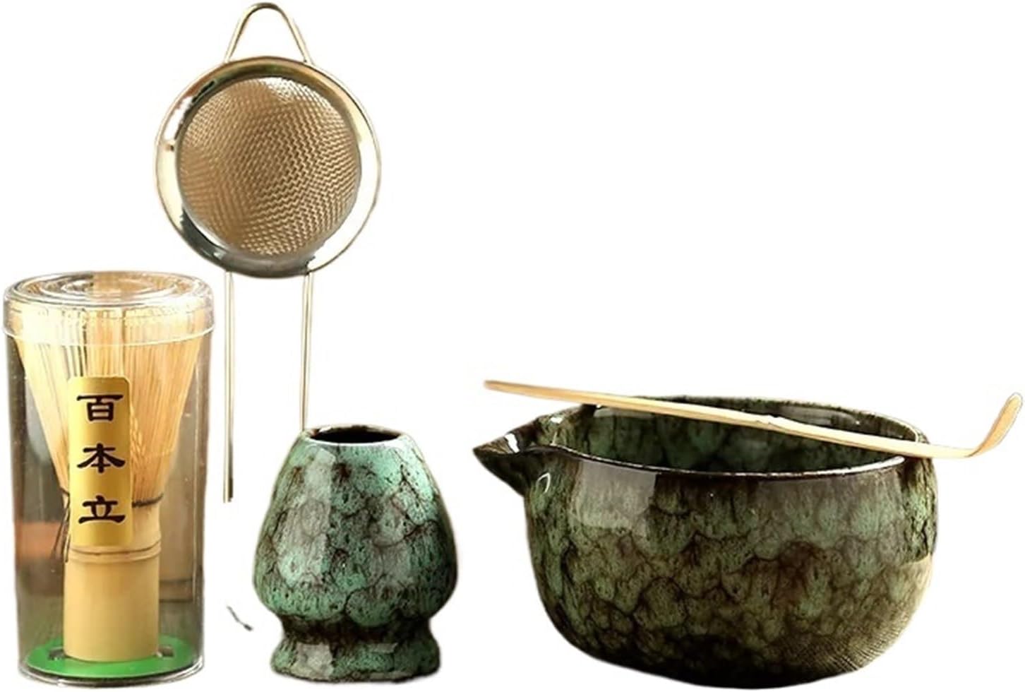 6PCS Matcha Tea Set Ceramic Matcha Bowl Bamboo Scoop Teaspoon Sifter Vintage Song Dynasty Tea Ceremony Kit