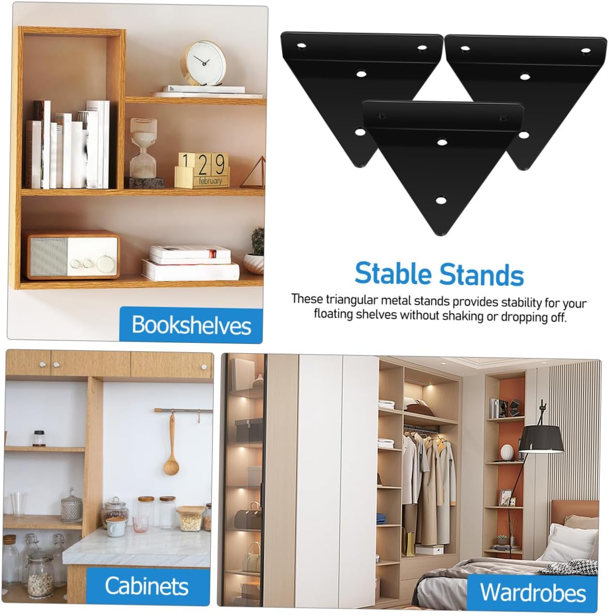 Package Include 6 x shelf brackets Features - design: The triangular brackets are designed to attach the shelves directly under the bottom, can not be noticed easily bookshelf. - Enhanced durability: Made from iron materials, these shelf brackets are strong and sturdy, have a good resistance to deformation black. -Color:As Shown shelf - Simple installation: No need to worry about complicate installations, it only take a few minutes to mount them on wall rustic. - Stable stands: These triangular metal stands provides stability for your floating shelves without shaking or dropping off pegboard. -Size:10.00X8.00X3.00cm/3.93X3.14X1.18in peg - Space-saving: The metal brackets fully use the room space for creating additional storage space at your living or working spaces hook. -Material:Iron triangle shelf support bracketGoods Descriptionshelf bracket They are invisible under the shelves, won't affect the home decor. shelf brackets These triangular brackets are made from fine wrought iron to ensure durability.cabinet corner bracket With the unique triangular design, they offer exceptional stability and support, making them an for a variety of