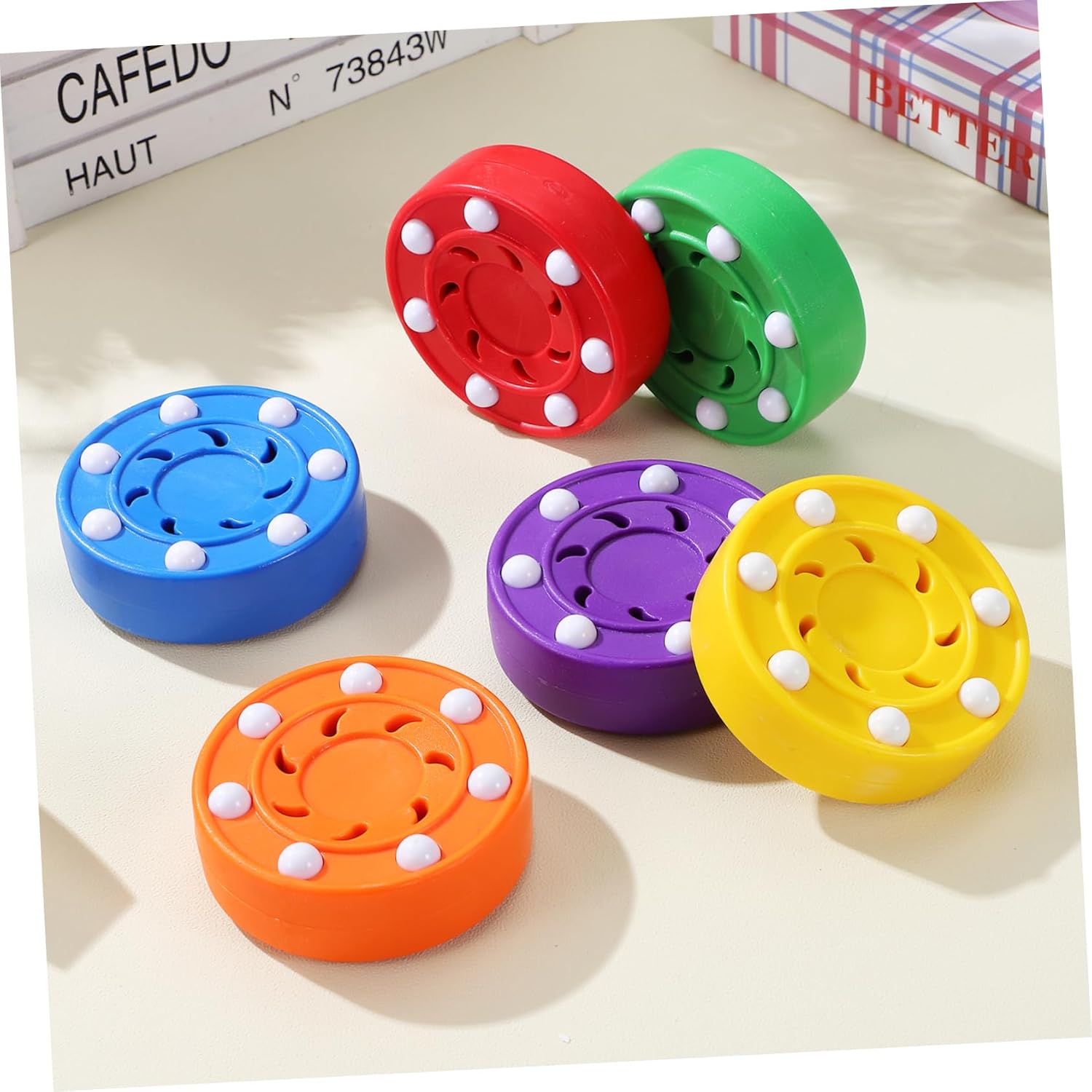 Package List 6 x street hockey pucks Characteristics -Bright and visible: The vivid colors of our training pucks make them remain highly visible on different playing surfaces, enhancing tracking during play training hockey pucks -Color:Assorted hockey balls -Size:7.50X7.50X2.50cm/2.95X2.95X0.98in hockey accessories -Built to last: These filed hockey pucks are tough enough to handle rigorous use, ideal for both professional and amateur players pucking ball -Filed versatility: Whether indoors or outdoors, these hockey roller pucks are suitable for practicing your skills in any setting hockey accessory -Material:ABS indoor hockey balls -Smooth and stable: Our hockey balls are engineered to roll consistently without wobbling, allowing for precise and outdoor hockey balls -Skill enhancement: Take your skills to the next level with our roller hockey pucks, designed to optimize performance during practice sessions training puckGoods Informationroller hockey balls These hockey roller pucks are an ideal addition to any training session, making a practical tool for both individual and team practice.outdoor hockey balls Players can rely on these practice pucks to enhance their overall game skills.outdoor hockey supply Their design promotes consistent performance, making them ideal for drills focused on passing and puck handling