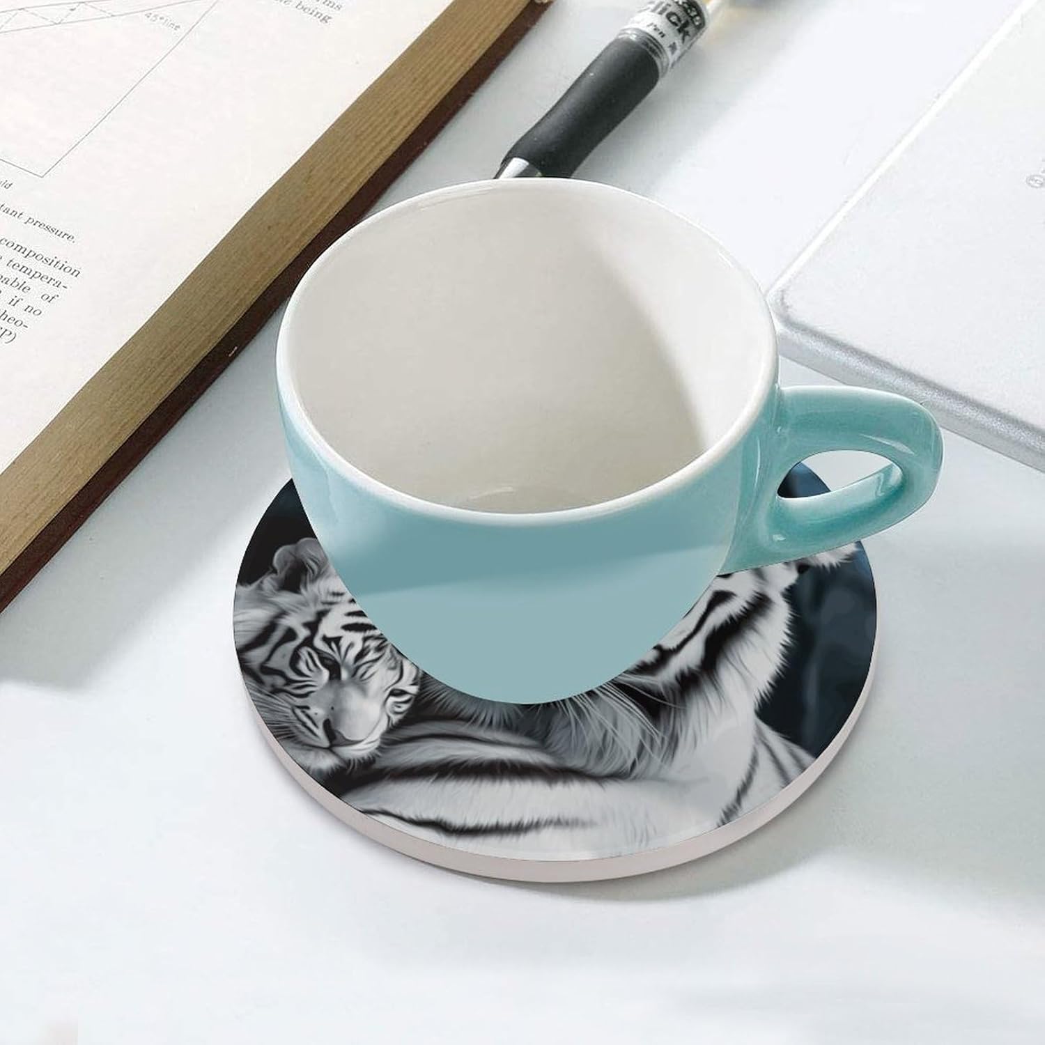 Transform your daily hydration into a stylish and protective ritual with our Cute Ceramic Coasters with Cork BottomDrink Coasters for Home Cup Mats for Table Rustic Coasters Round Coasters Unique Coasters Vintage Coasters Art Teacher Gifts Round Drink Coasters for Hot Cups Funny Coasters Outdoor Coasters for Patio Table Waterproof Bar Coasters Non-Slip Table Coasters Absorbent Coasters Ceramic Car Coasters for Cup Holders Ceramic Cup Holder Coaster for Car Cool Coasters Pretty Coasters White Wine Coasters Housewarming Gifts CoastersSuitable Size:Heat resistant coasters for drinks arr crafted from ceramic and finished with a natural cork base, each coaster is as practical as it is sustainable. The 4.1-inch round size is perfectly proportioned to sit under a variety of glassware - from your favorite coffee mug and ceramic teacup to tall glasses of iced tea or bottles of beer.Double Protection:The heat-resistant ceramic top acts as a shield, guarding your cherished wood tables, kitchen countertops, and office desks against hot beverages, unsightly water rings, and condensation . Meanwhile, the soft, non-slip cork bottom plays a dual role: it prevents the tea coasters from sliding around when you reach for your drink, and it ensures your furniture remains free from scratches and scuffs.Multi Purpose: Whether you're decorating a coffee table in the living room, adding a functional touch to a home office, or setting up a bar cart for entertaining, these decorative coasters are the perfect blend of utility and subtle style.Material: Ceramic & CorkSize: 4.1 inches (Diameter)Care: Wipe clean with a damp cloth.Designed for the modern home, these heat resistant cup mats blend functionality with minimalist aesthetics to keep your surfaces pristine.