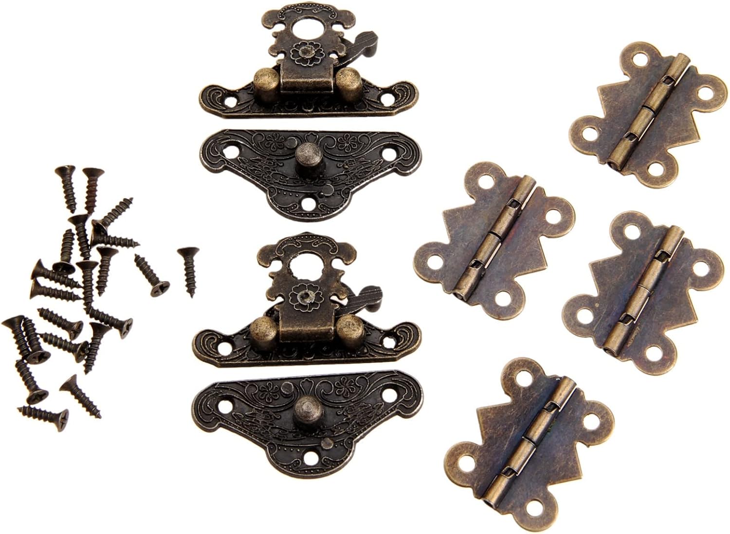 Features: .Retro design. and easy to install. for vintage wooden box, jewelry box, gift box, wine box, toolbox, cabinet, cupboard, etc.An hardware for home, office, shop, and so on.Material:IronSize:Hasp:38*29mm/1.5"*1.14"Hinge:25*20mm/0.98"*0.79"The angle of rotation approx.0°-270°Color:Antique bronzePackage list:2 x Box Latch Hasps4 x Hinges28 x ScrewsNote: Please allow 1-3mm error due to manual measurement.