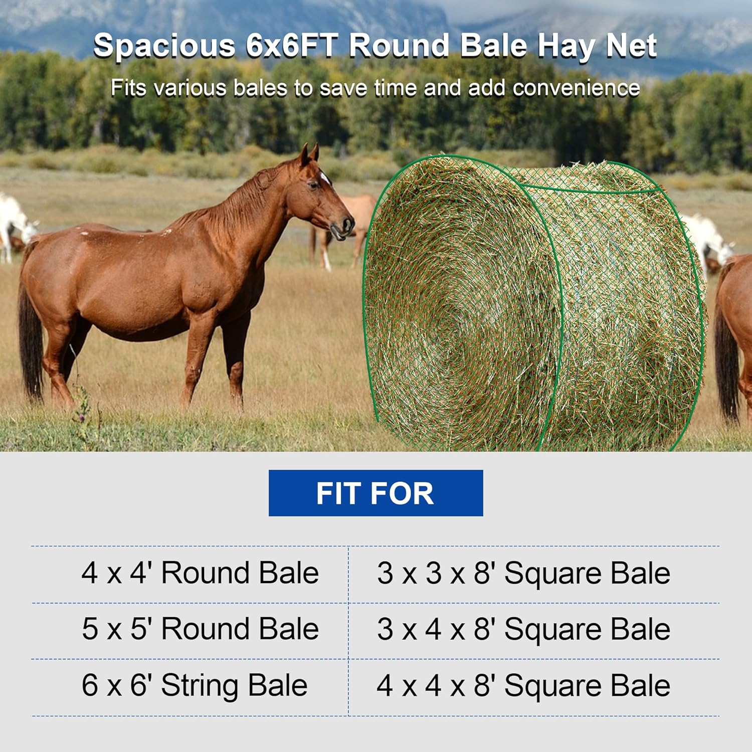 | Included Components | 1 x Repair Shuttle, 20pcs Self-Locking String Ties, 6'x 6' Hay Net, 66FT Repair Twine |