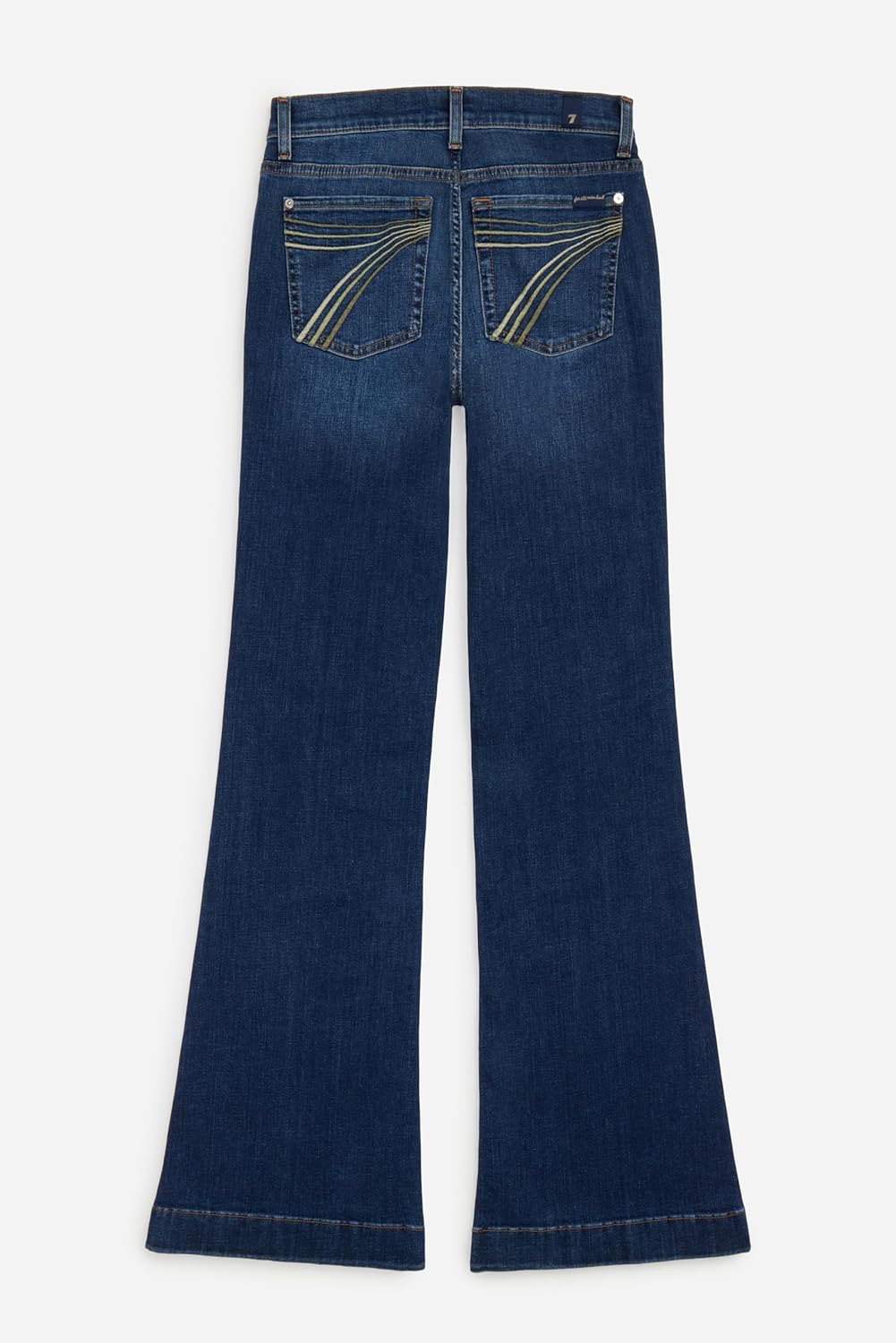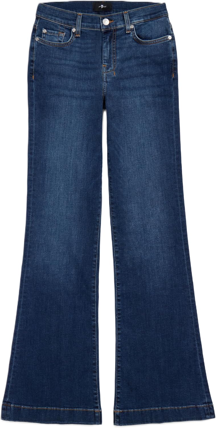 7 For All Mankind's ever-popular trouser silhouette is crafted in premium signature denim with comfort stretch for all-day wear. Offered in a medium blue wash complete with 7's signature embroidered back pockets, this pair of women's denim features versatility and comfort for any moment. These are the jeans you'll be pairing with everything in your closet.