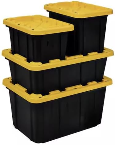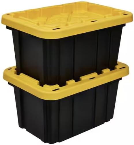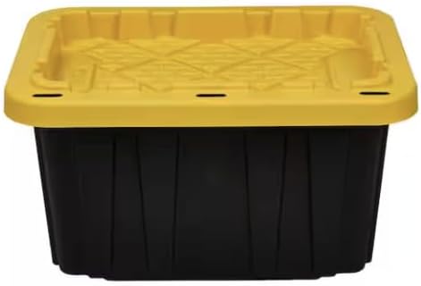 The 7 Gallon Storage Tote with Lid in Black is an ideal storage solution for the thorough organizer. Its recessed lid allows for effortless stacking of multiple units, and the tapered design facilitates easy nesting for compact storage. Crafted from high-grade resin, the sturdy black base provides durability, while the yellow snap lid ensures the safety and protection of your items. Integrated slots for locking deter unwanted access, and unique tie-down channels make it easy to secure for hassle-free transport. This tote is also compatible with most hitch-mounted cargo carriers, offering versatility for your storage needs. The exterior dimensions at the top of the tote are 18.80 inches in length, 13.40 inches in width, and 10.60 inches in height.