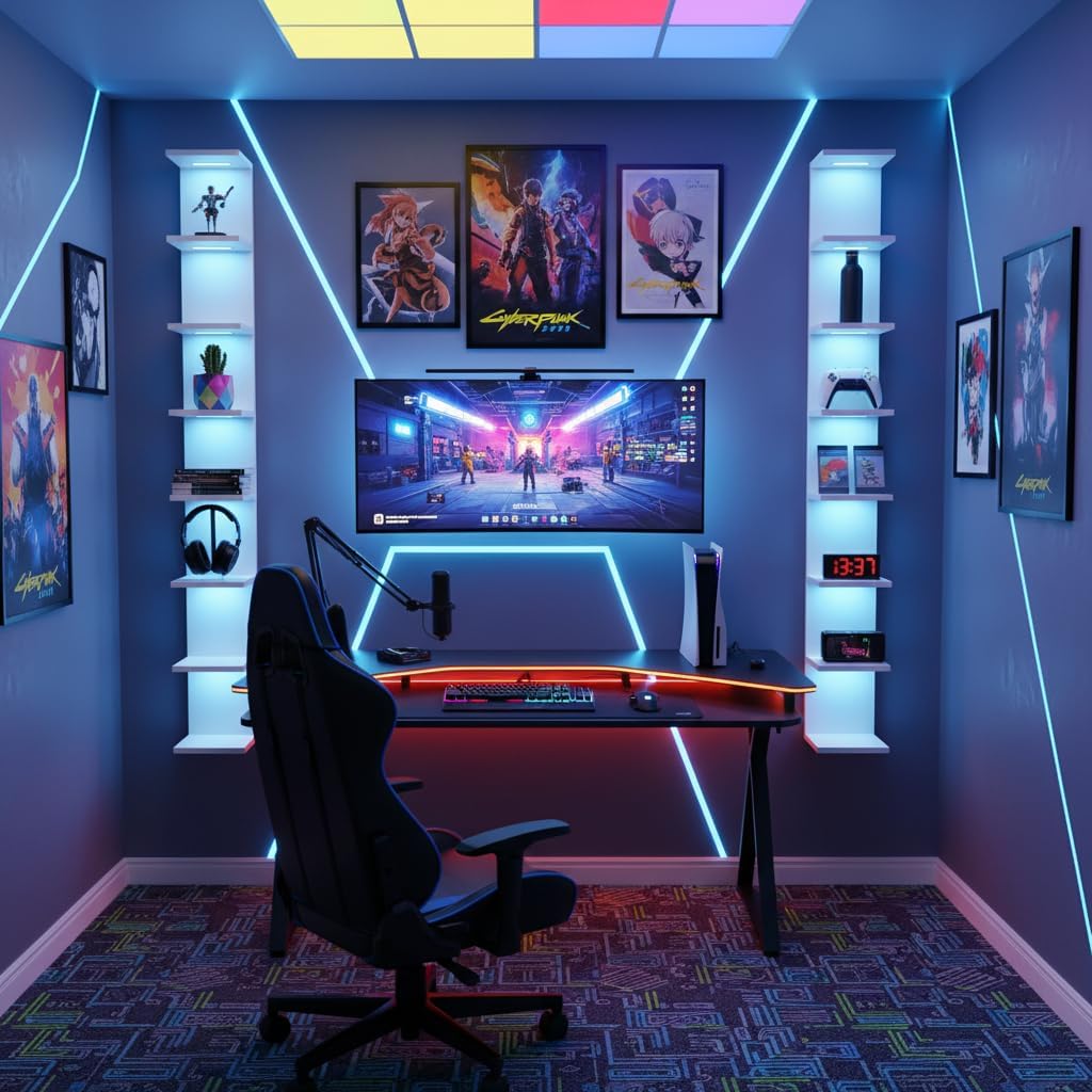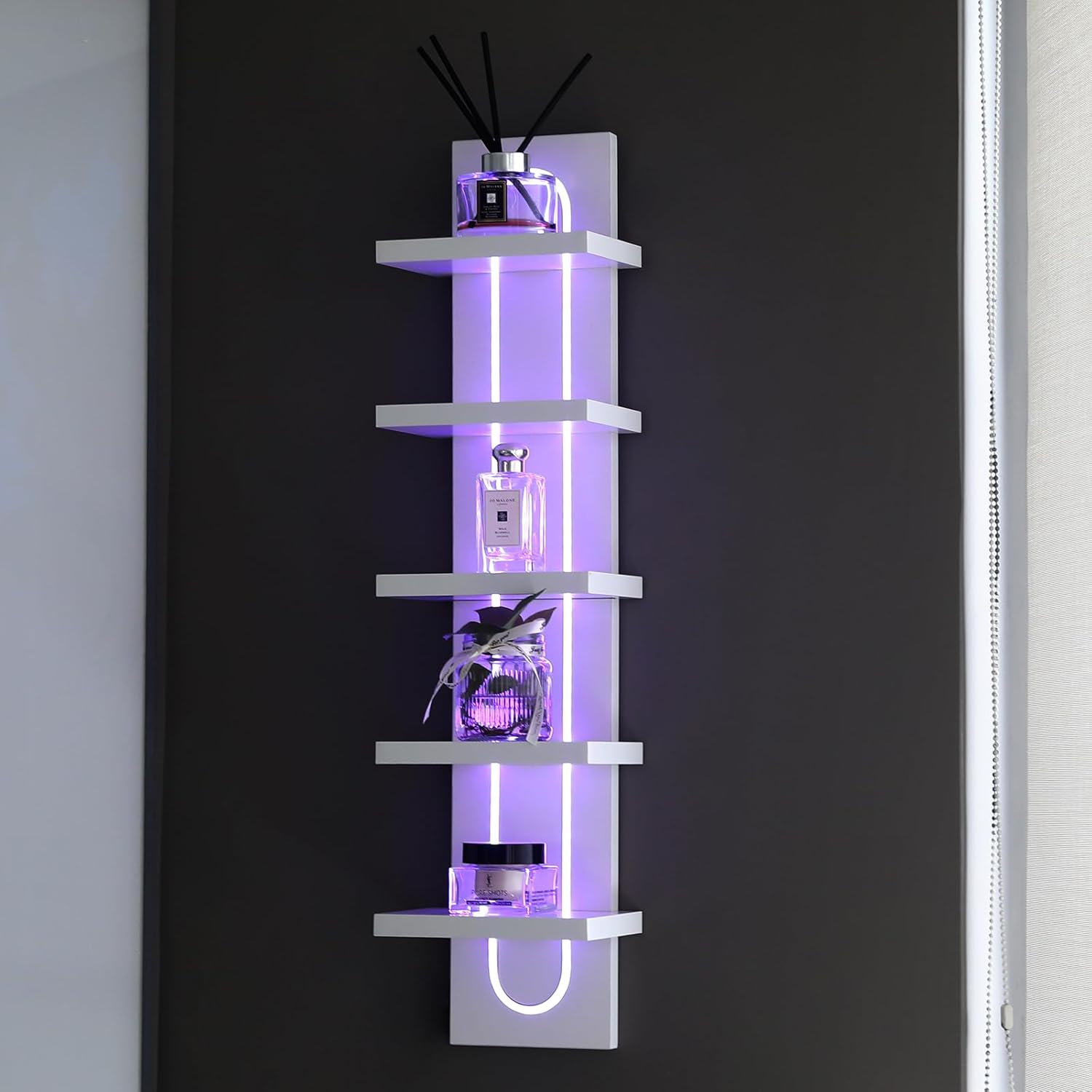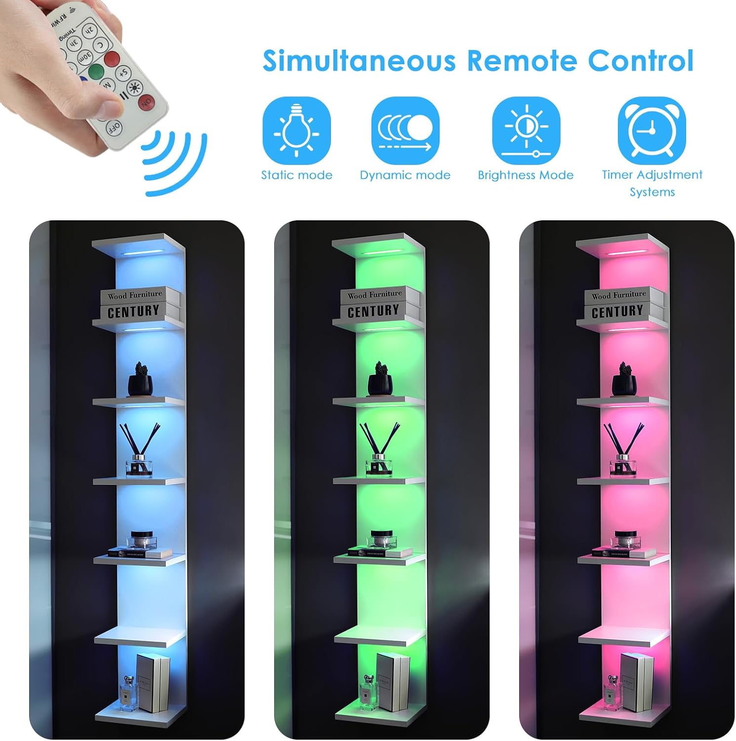 | Assembly Instructions Description | Instructions for wall mounting, assembling the shelves, and connecting the RGB lights. |