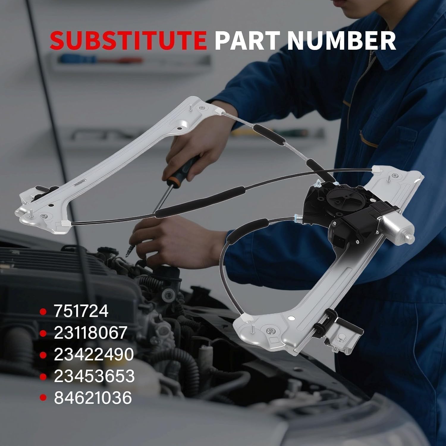 Fitment:Power window regulator compatible with Escalade / Escalade ESV 2015‑2019Power window regulator compatible with Silverado 1500 2014-2019Power window regulator compatible with Silverado 1500 LD 2019Power window regulator compatible with Silverado 2500 HD / 3500 HD 2015-2019Power window regulator compatible with Suburban 2015-2019Power window regulator compatible with Suburban 3500 HD 2016-2019Power window regulator compatible with Tahoe 2015-2020Power window regulator compatible with Sierra 1500 2014-2018Power window regulator compatible with Sierra 1500 Limited 2019Power window regulator compatible with Sierra 2500 HD / 3500 HD 2015-2019Power window regulator compatible with Yukon / Yukon XL 2015‑2019Substitute Part Number:75172423118067234224902345365384621036