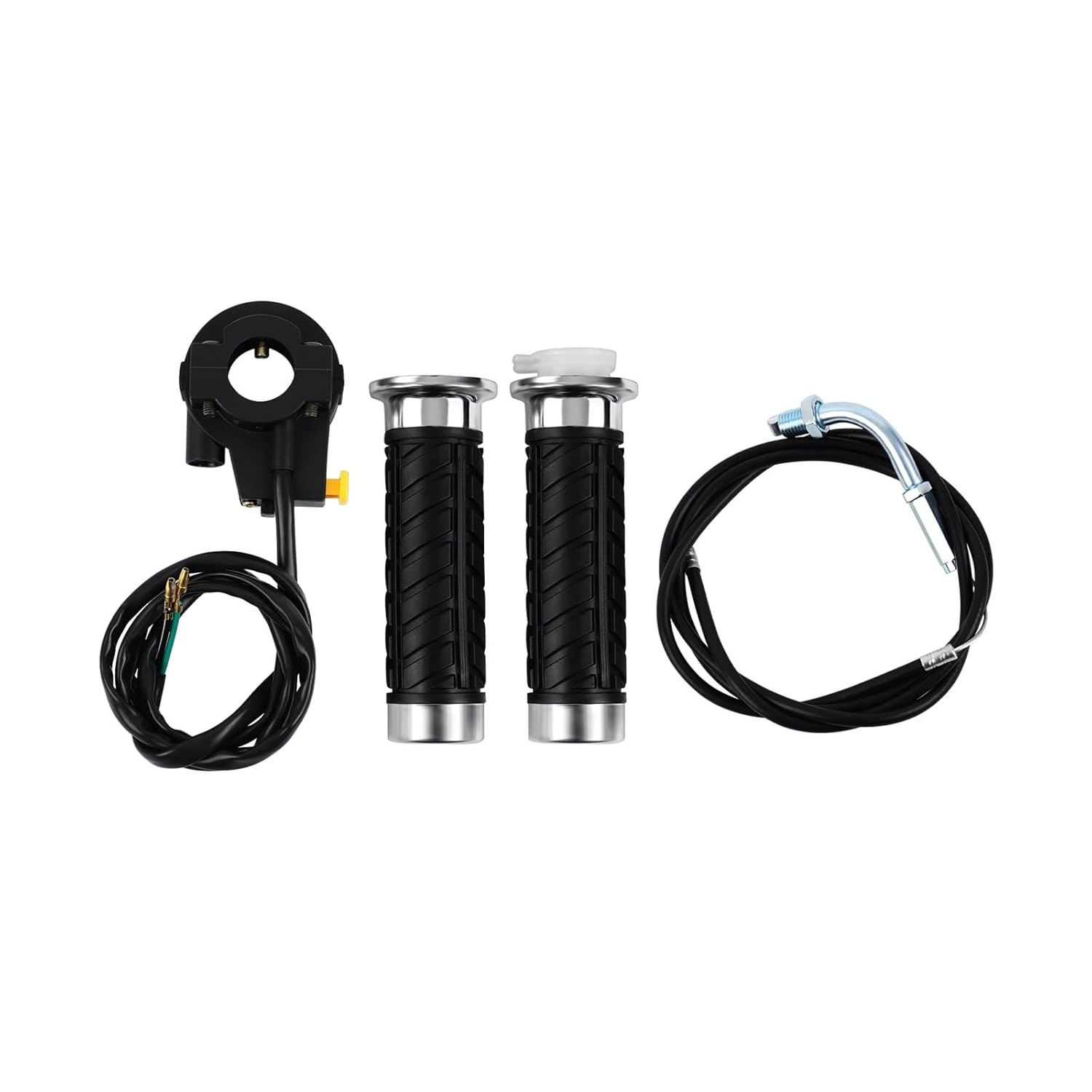 SwitchesHrottle Cable Length: 45.6in/115.7cm Off Switch Cable Length: 37.3in/94.8cm Throttle Inner Diameter: 7/8in/22-23mm Fitment: For 49CC-80CC Electric Bike Package Included: 2 x Handle Grips 1 x Off switch cable holder 1 x Throttle Cable Item Weight : 0.35kgItem Height : 7cmItem Width : 20cmItem Length : 24cmMaterial : PlasticItem Type : gripsColor : Black