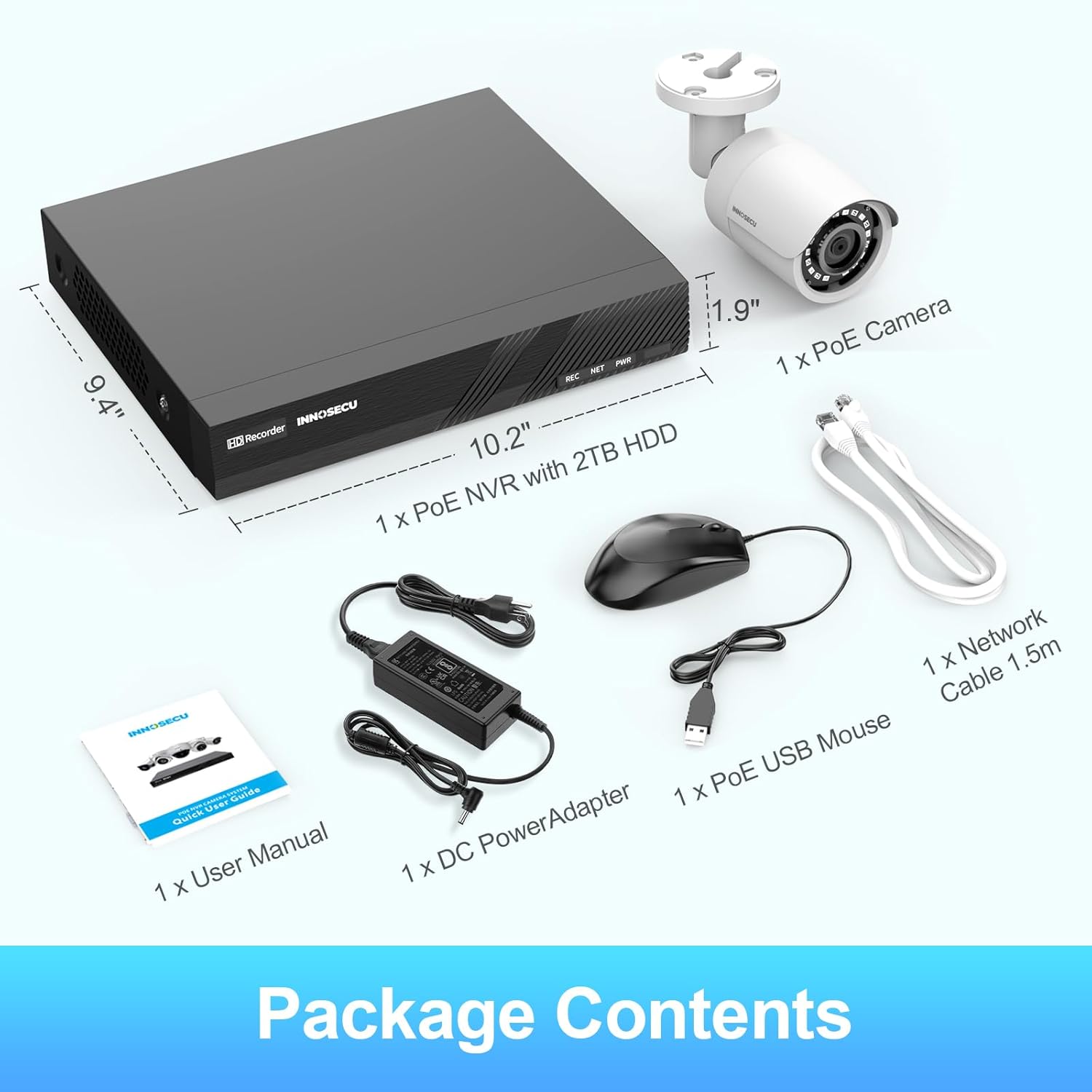 | BuiltIn Media | 1x 8-Channel 4K PoE NVR (2TB HDD), 1x DC Power Adapter, 1x Mouse, 1x Quick User Guide |