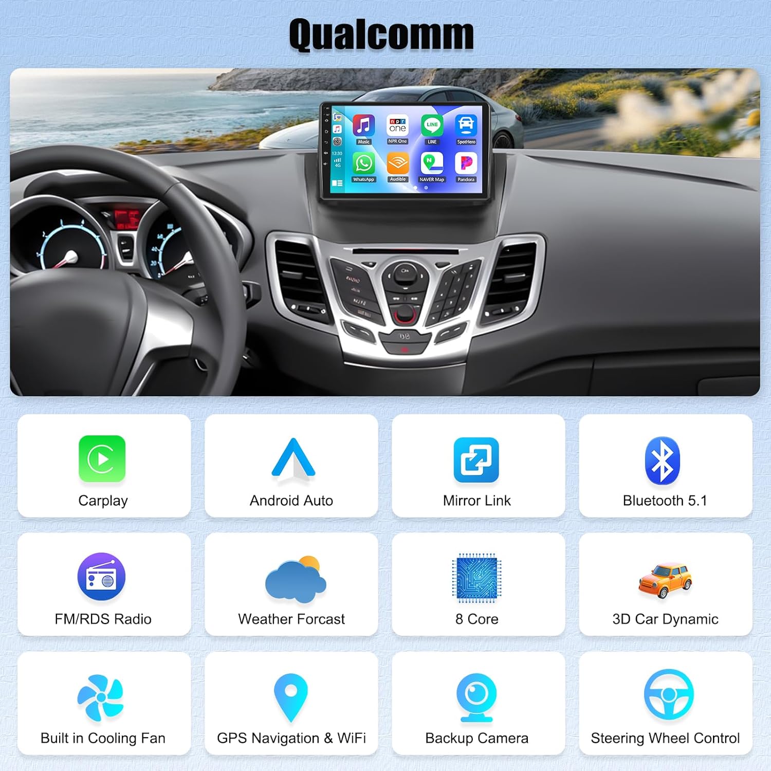 | Additional Features | 8 Core Android 15 4+64G, CarPlay&Android Auto&Mirror Link, FM/RDS&EQ, GPS&WIFI, SWC&AHD Backup camera |