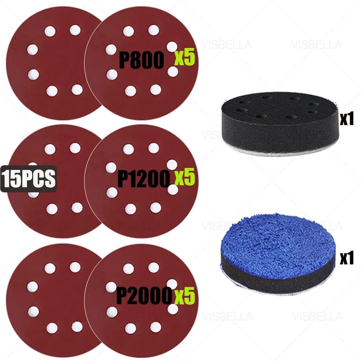Abrasive BrushesSandpaper 5inch 125mm125mm 5 Inch Sandpaper Sanding Disc Hook Loop 8 Hole Sandpaper Pads For Metal Wood Car Wheel Headlight Polishing Kit P800-P5000Packing list 1: 5*P800; 5*P1200; 5*P2000;Packing list 2: 5*P1500; 5*P3000; 5*P5000;==========Origin : Mainland China