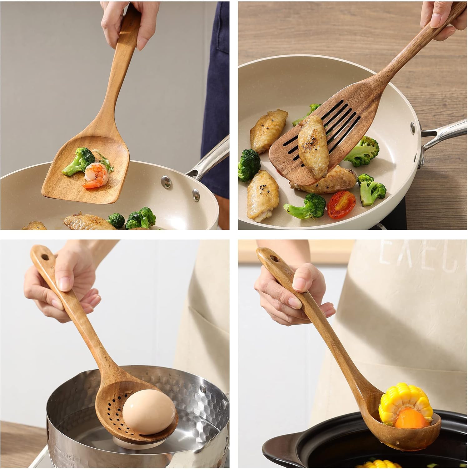 MAXCOOK 8 Pack Wooden Spoons for Cooking and Kitchen Utensil Drying Rack