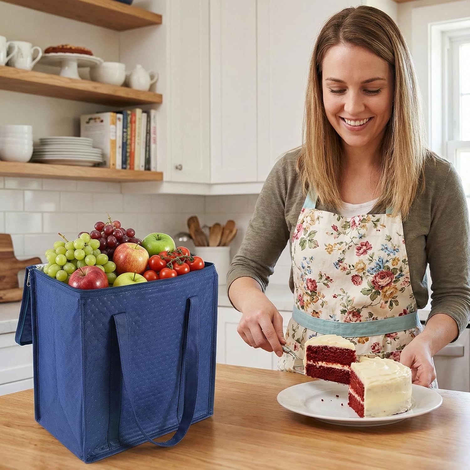 Description:Product Name: insulated shopping bags for groceries with zipper and handlesMaterial: Non-woven fabricProduct size: 33X30X18CMDimensions: Navy Blue and BlackPacking List:8 pcs large foldable cooler bags