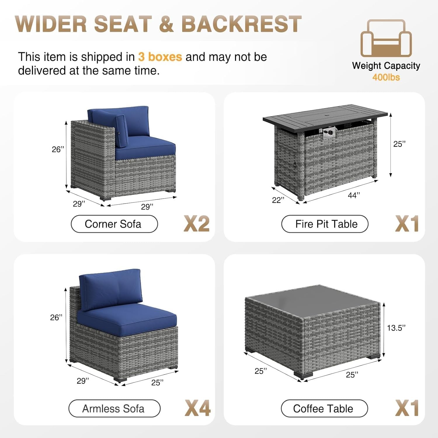 Package includes:1*A set of outdoor sofas1* Manual
