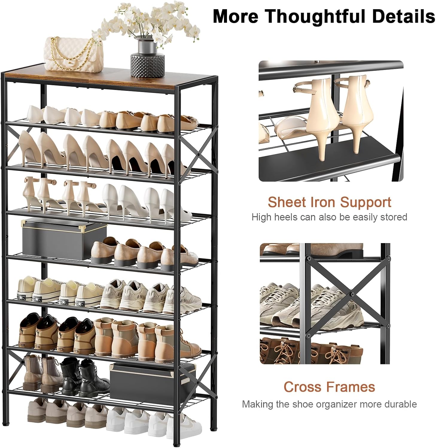 | Assembly Instructions Description | The tall shoe rack has a simple structure and all accessories have been numbered in order. With detailed assembly instructions and necessary tools, the assembly can be completed without too long and can be quickly put into use |