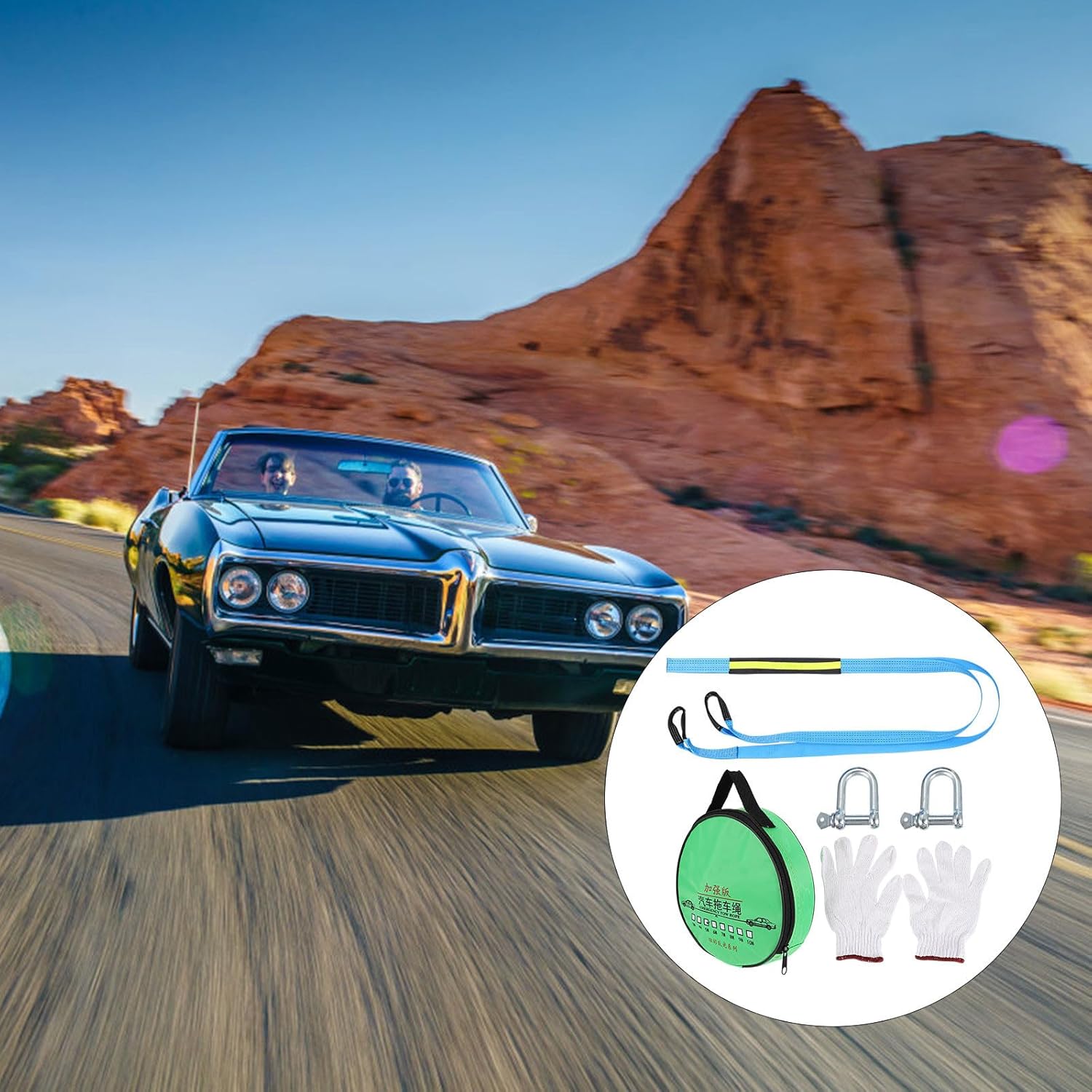 Package Include 1 x Trailer Rope 1 x Glove 1 x Hook 1 x Storage Bag Features - Material: Polyester. -Product Info:Polyester trailer rope - Size: 500.00X5.00X0.80cm/196.50X1.97X0.31 inch. - Color: Blue. - U-shaped hooks can prevent it from falling off the car and for extra secure towing and easy hook up tow strap with reflective strip. - Easy to handle, and much safer and stronger than steel wire rope tow strap with hooks. - The product is made of sturdy polyester material with premium hooks. - Reinforced edging, thickening and widening design, suitable for most below 5 tons cars tow rope. - A to your car by getting you out of a tough spot on the trail towing rope.Goods Descriptiontow rope with hooks Are you looking for practical, yet trailer rope? Are you in search of a sturdy, trustworthy tool that can do multiple jobs at once? , ! This 5 meters tow strap must meet your needs.tow strap It is one of the for you