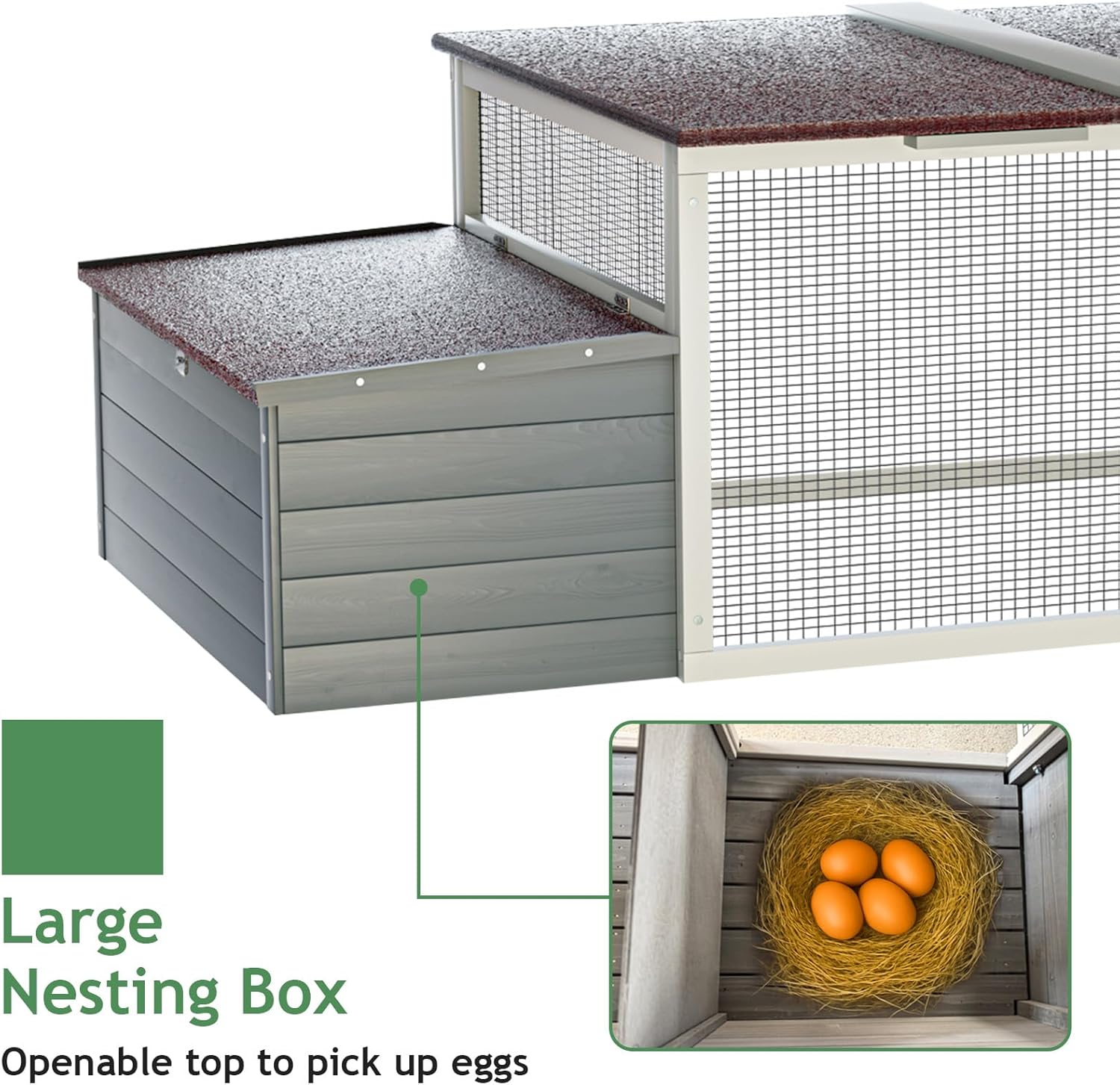 Yafylly wooden chicken coops transform your backyard into a safe, stylish home for your poultry friends. Specification:- Overall Dimension: 85.3"L x 35.4"W x 23.2"H- Down Playing Area: 20.93 ft²- Material: Wood