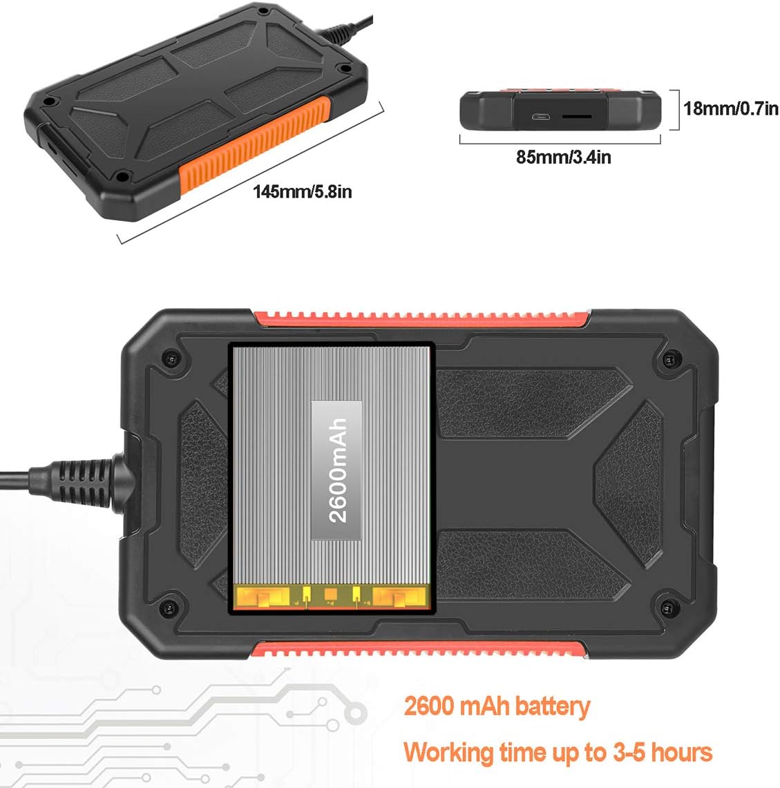 Display: 4.3-inch color LCD display Camera resolution 1920*1080P Horizontal viewing angle: 700 Language: 11 languages Cable length: 2m 5m 10m optional Focal length: 4CM-500CM Waterproof: IP67 Camera diameter 8mm Battery capacity: 2600 mAh Working time: 5-7 hours