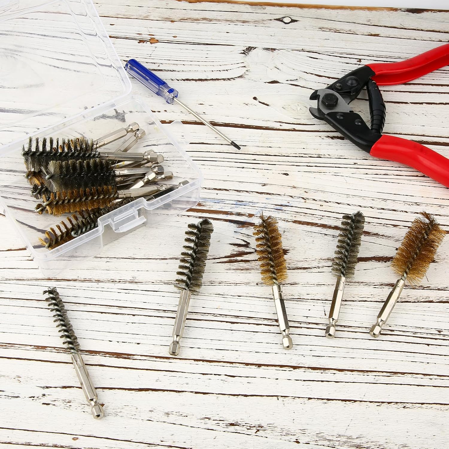 Specification: Color: as shown in the picture Material: Brass, stainless steel Product Size: as shown in the picture Package details: 16 x bore brushes for drill Note: Due to manual measurement, the size and weight may have a certain error. Due to the difference between monitors, there may be a slight color difference.