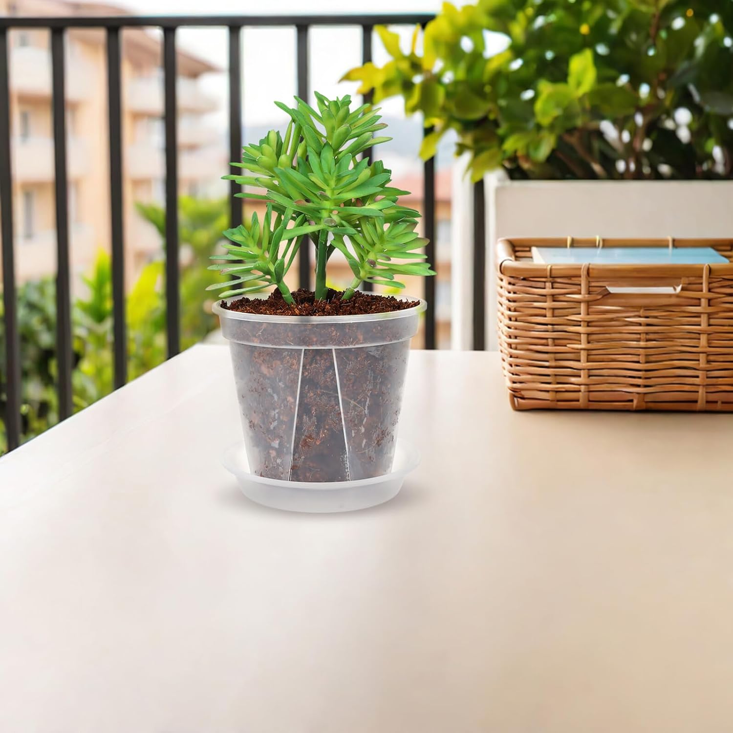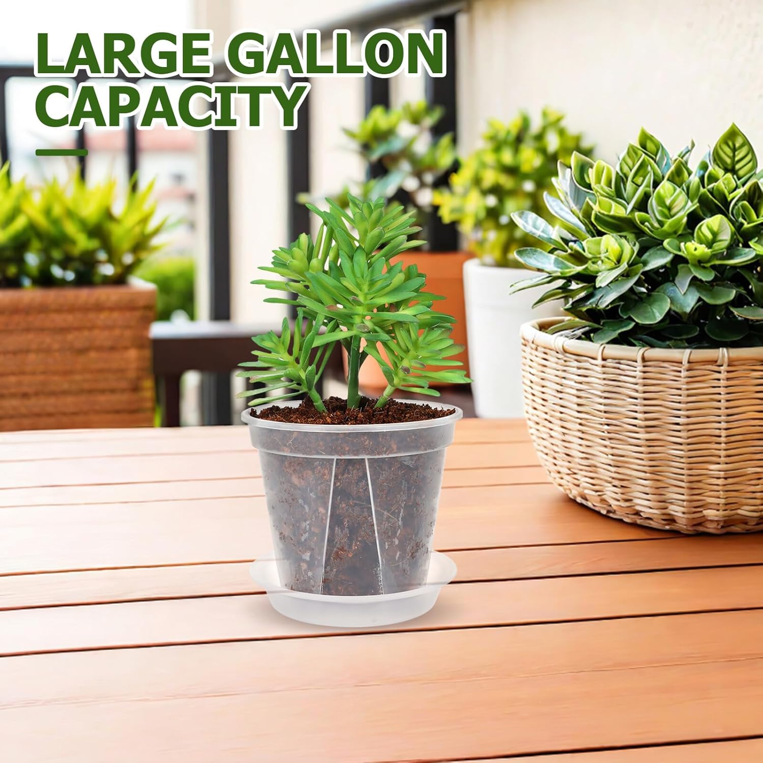 Package List 8 x nursery pots Characteristics -Large gallon capacity: each garden flower pot offers generous growing space, reducing the frequency of watering and making plastic flower pots perfect for busy households or balcony gardens plant pots plastic -Product Info: Breathable root-controlling flower pots - Size: 20.80X20.80X20.40cm/8.17X8.17X8.02in -Color:Transparent - Size: 18.00X18.00X15.30cm/7.07X7.07X6.01in -Lightweight & design: made of PP, these reusable flower pots are easy to move, clean, and maintain, enhancing the appeal of any outdoor or indoor planting arrangement plastic plantpot -High light transmission: the transparent flower pot container allows for easy monitoring of soil moisture and plant roots, making flower pots suitable for both gardening and indoor care Pots For Flowers -Material:PP - Size: 12.00X12.00X10.40cm/4.72X4.72X4.09in -Versatile planting solutions: designed as nursery plastic planter pots, ideal for butterfly orchids, roses, green plants, succulents, and more, catering to various indoor and outdoor gardening needs garden plastic pot - Size: 14.80X14.80X13.00cm/5.82X5.82X5.11inGoods Descriptiongarden plastic pot This plastic planter features a transparent design that allows you to monitor soil moisture and root health easily, creating ideal growing conditions for orchids, succulents, and green plants.plastic flower pots The nursery plant pots utilize root-control technology to prevent tangling and help plants grow indoors or on sunny balconies