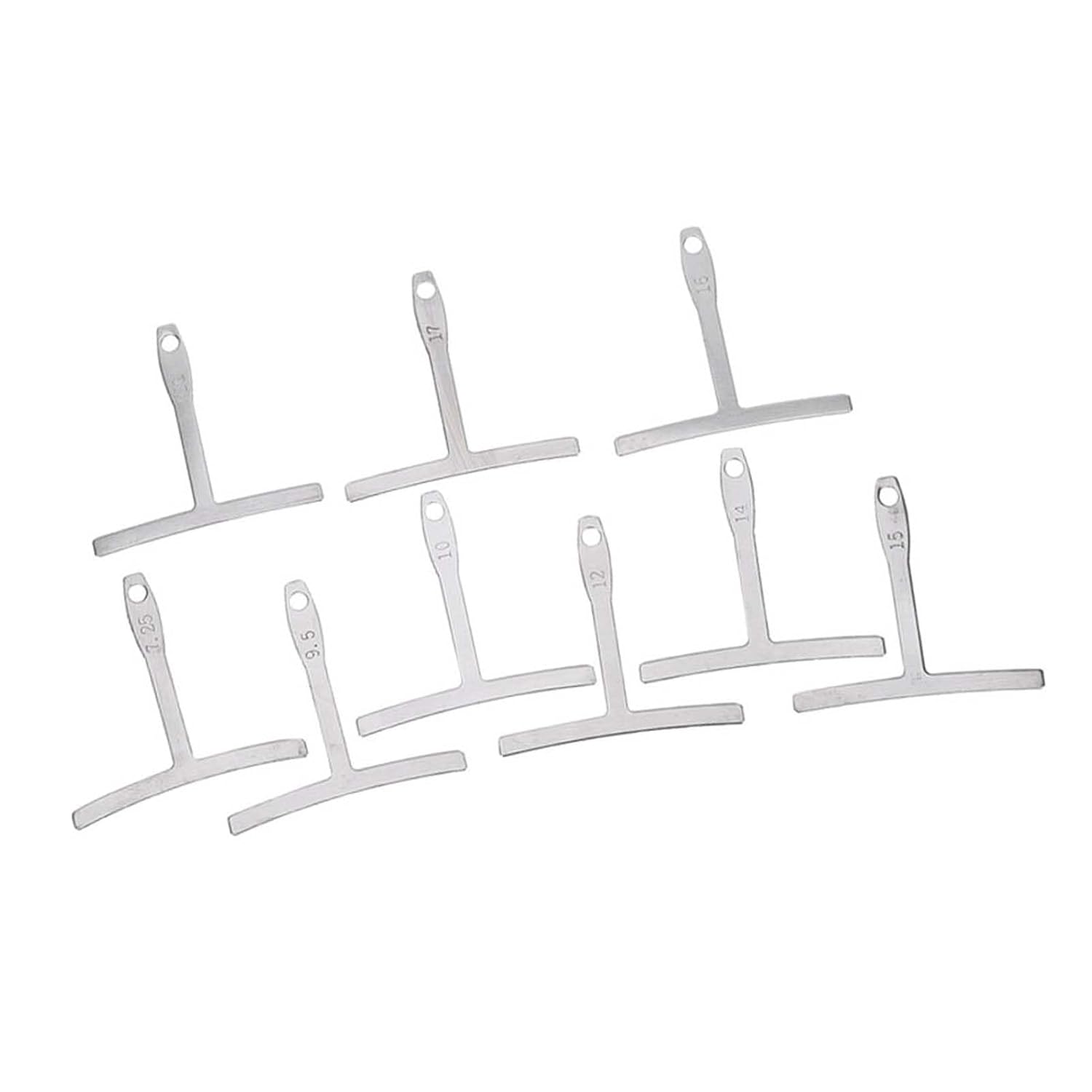 [USEFUL TOOL FOR GUITARRISTS] A valuable instrument for adjusting the bridge of the guitar to match the radius of the arm. [ENGRAVED HAND] Features engraved marks for quick and easy measurements above or below strings. [VERSATILE USE] Suitable for bridge saddles of folk, electric or bass guitars. [PREMIUM MATERIAL] Made of stainless steel for long lasting performance. [PRECISE MEASUREMENT] Ideal for determining arm radius for precise settings. Specifications: Item Type:Guitar Spoke Gauge Material: stainless steel Function: Measure the arm radian Package List: 1 set of Guitar Spoke Gauge (Including 9pcs) Note: