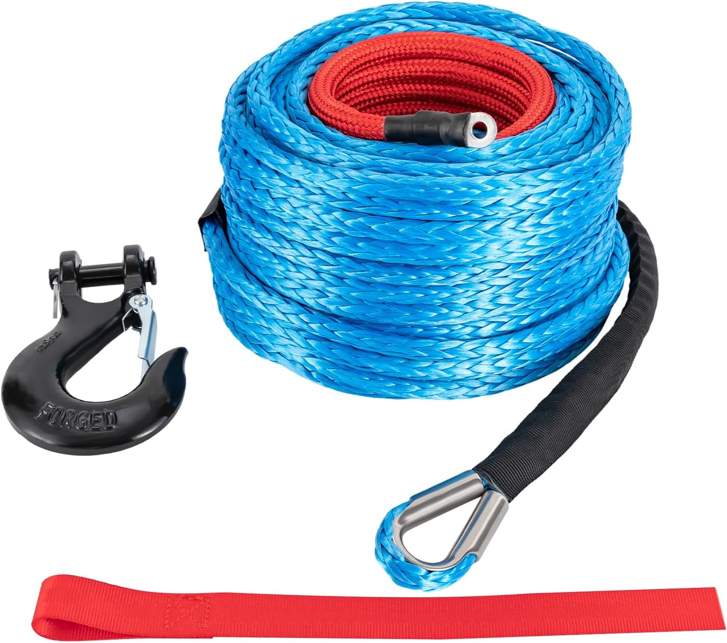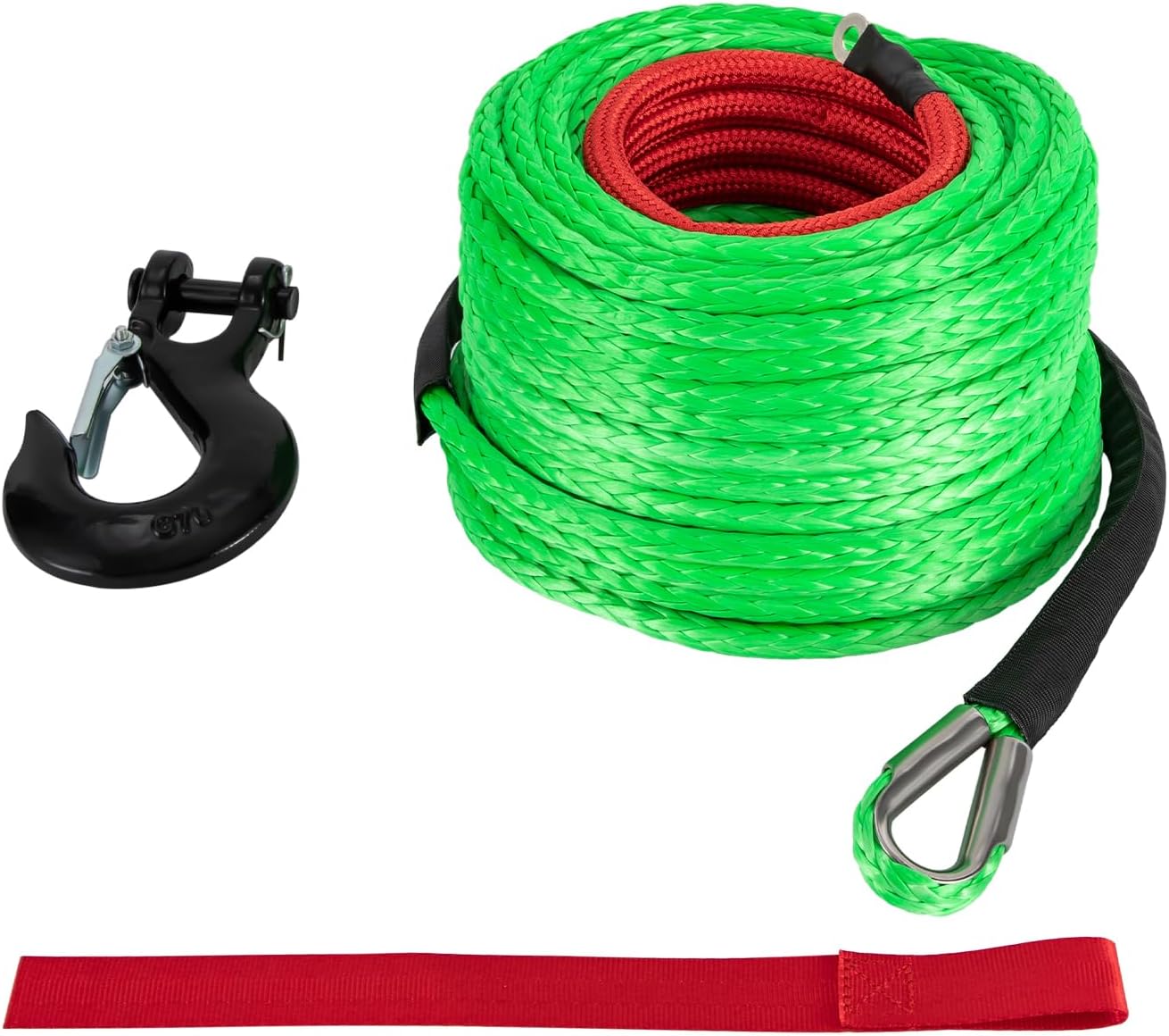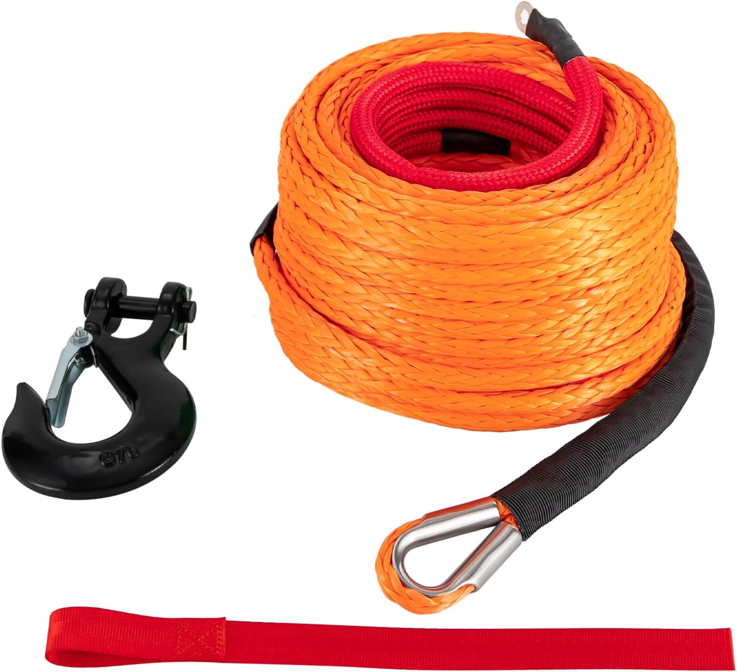 Are you tired of rusty steel cables? Come and upgrade your tool to a more durable and lightweight winch rope! It is made of high-quality polyethylene and equipped with a sturdy stainless steel hook, together with its 35,000 lbs breaking strength, which can easily handle various tensile tasks and become your good helper!Details Tape Treatment: Its tail is fixed with tape, which not only protects the rope tail but also ensures its durability.Safety Pull Strap: It allows you to pull the winch rope easier and safer without hurting your hands. Sliding Protective Sleeve: The 23.62in sliding protective sleeve prevents the rope from abrasion, overheating, and slipping.ApplicationIt can be widely used as a sailing rope, yacht mooring rope, protective rope, mountaineering rope, and electric traction rope, suitable for most winches of SUVs, jeeps, trucks, ATVs, UTVs, and other vehicles for self-protection, field rescue, mud towing, and other areas that require lightweight and high strength. It is an excellent supplement to your tools! SpecificationsColor: OrangeFastener Type: HookNumber of Items: 1Rope Material: Polyethylene Hook Material: Stainless SteelSurface Treatment: Heat Treatment, Carbamate-coatingVehicle Service Type: ATV, SUV, UTV, Truck, WatercraftProtective Sleeve Length: 60cm/23.62inBreaking Strength: 15.87T/35000lbsWinch Rope Diameter: 1.43cm/ 9/16" Winch Rope Length: 23.16m/76ft Package Size: 26*26*18cm/10.2*10.2*7inNet Weight: 2.4kg/5.3lbsGross Weight: 3.5kg/7.7lbsPackage Included1*Synthetic Winch Rope1*Hook1*Safety Pull Strap