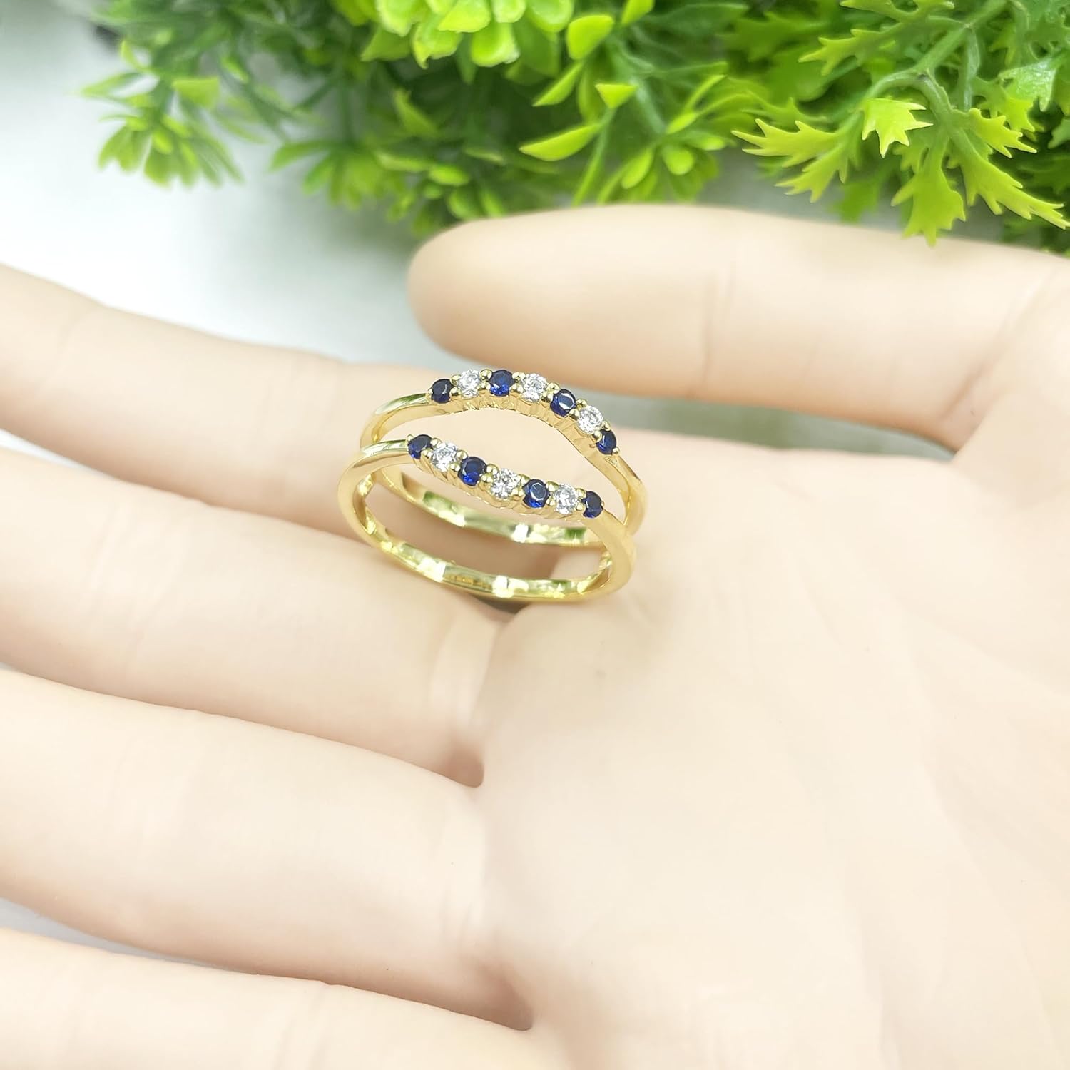 This Ring Crafted in 925 Sterling Silver, available in 14K White, Yellow and Rose Gold Plating. Round Cut simulated Blue Sapphire & White Diamond set in prong setting