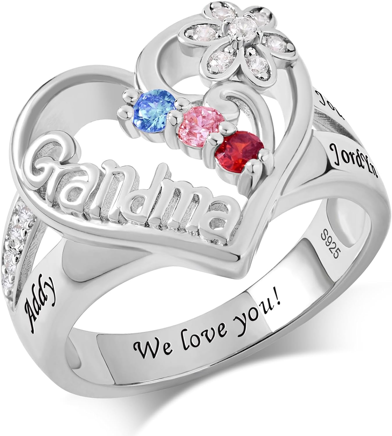 925 Sterling Silver Personalized Grandmother Rings with 1-8 Birthstones Custom Birthstone Rings for Women Mothers Ring for Grandma Name Engraved Family Ring for Mom Christmas