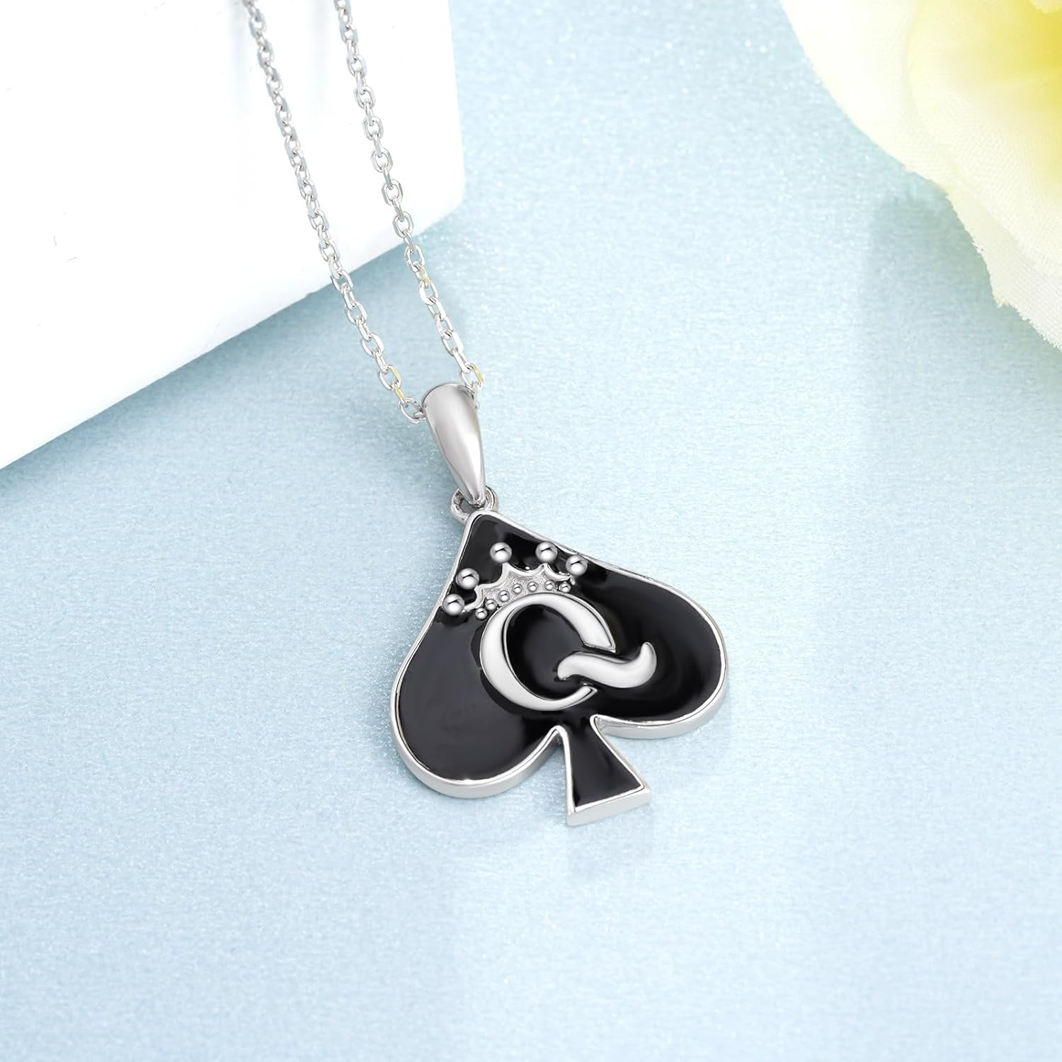 925 Sterling Silver Queen of Spades Necklace – Elegant Black Spade Pendant Jewelry – Empowered Woman Gift Symbolizing Strength and Confidence