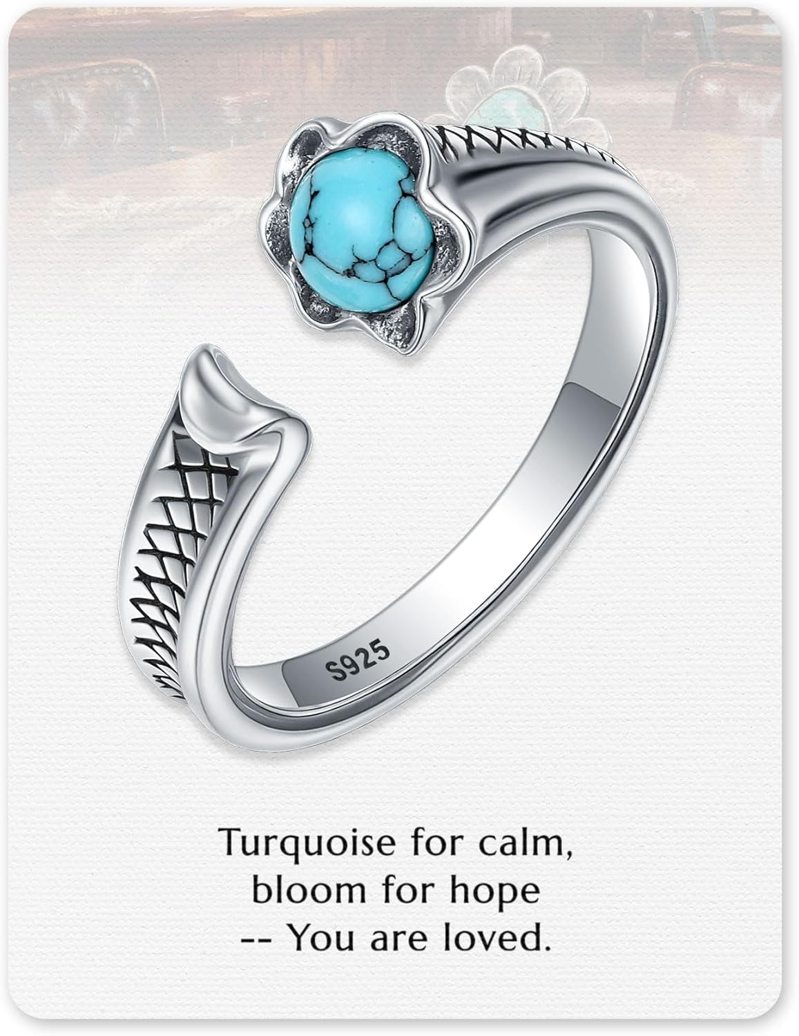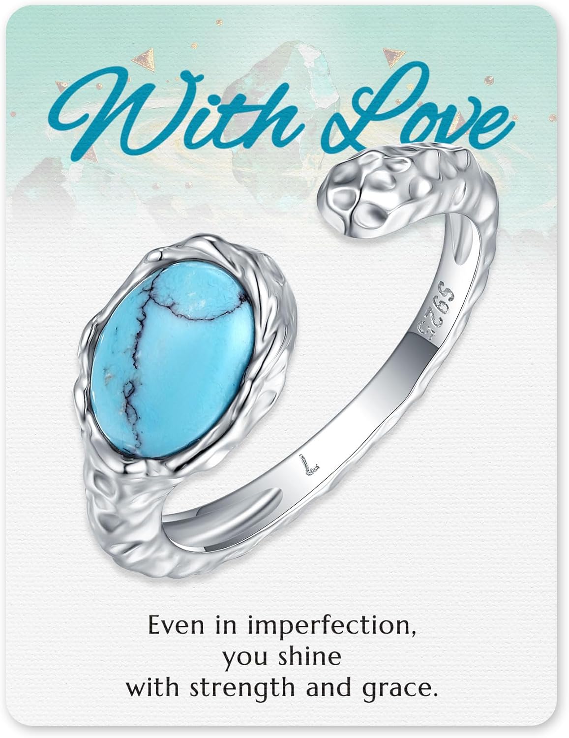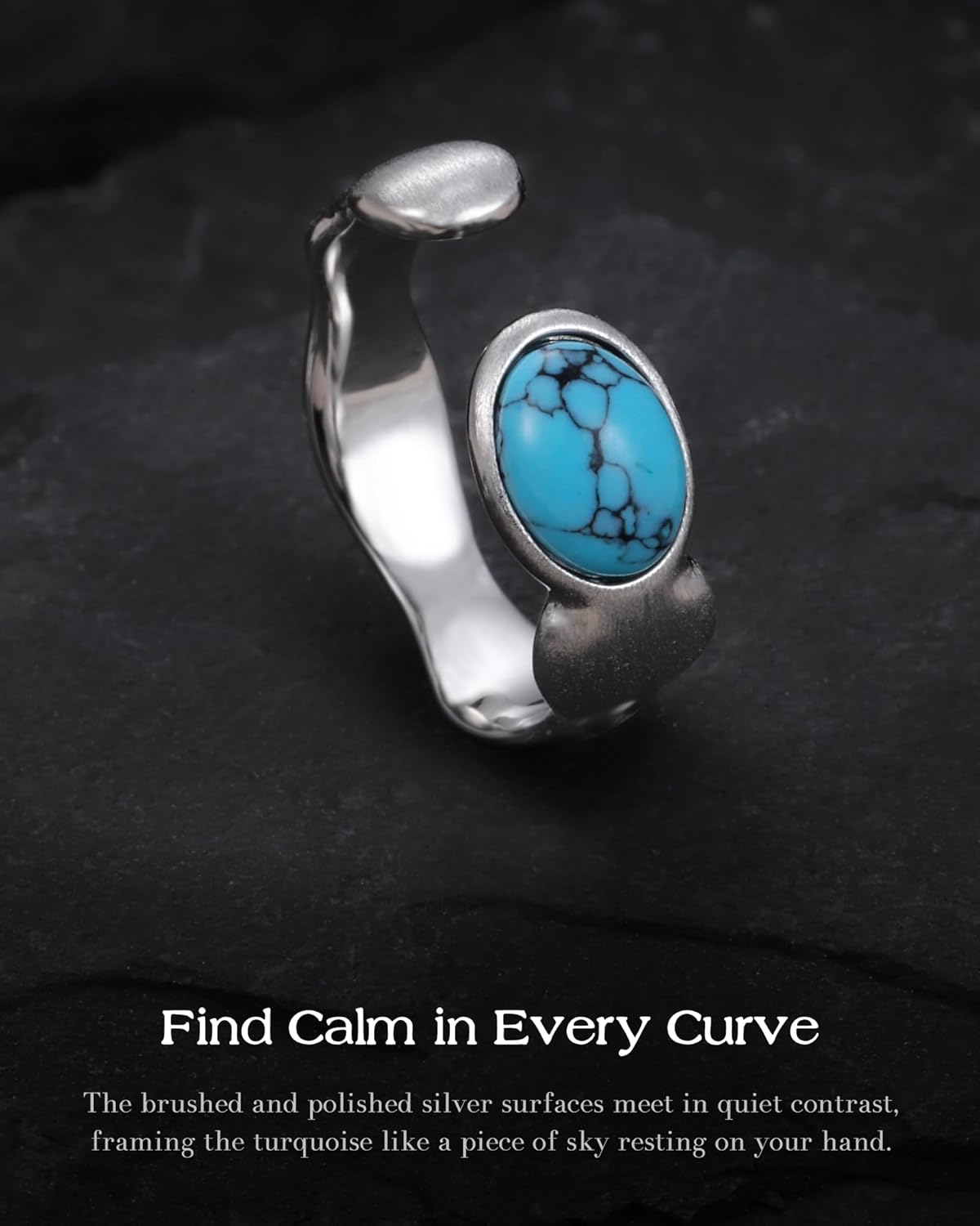 This collection of turquoise open rings brings together modern simplicity and vintage character. Crafted from genuine 925 sterling silver, each ring features a natural turquoise stone paired with a distinctive finish—ranging from polished and brushed to hammered and organic textures. The adjustable open design offers flexibility and comfort, while the variety of shapes allows you to choose a style that reflects your personality. Whether you prefer clean geometric lines or artisan-inspired textures, these turquoise rings add a natural and refined touch to everyday wear.
