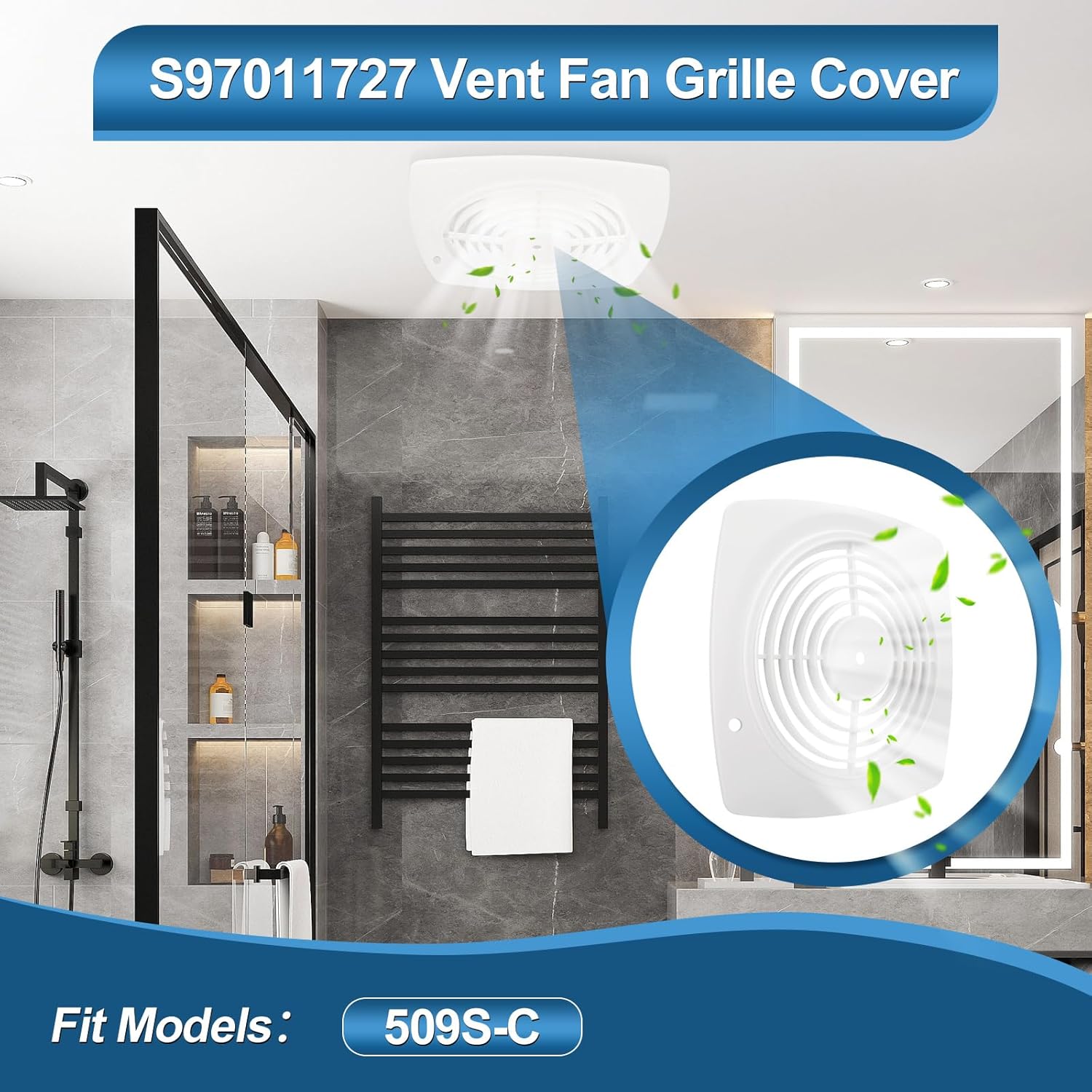Replace your old grille with this 97011727 bathroom vent fan cover and kitchen ceiling exhaust fan cover, compatible with 509S-C models. Made of durable ABS, measuring 11.5" x 11.5", it offers long-lasting use and a fresh look for through-the-wall installations.Equipped with the S99010042 filter, it helps reduce grease and improve air quality in both bathroom and kitchen spaces. Filter measures 9.5" diameter with a center grommet for secure fit.Complete kit includes cover, filter, grille screws, control knob, mounting knob, and bracket for easy installation and a perfect fit without extra tools.