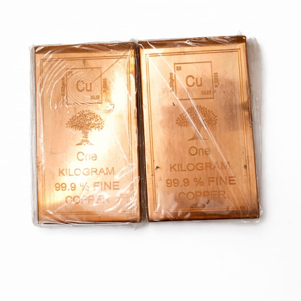 This premium 1 kilogramme copper bullion bar from AJ represents a smart investment opportunity in one of the world's most valuable industrial metals. Crafted from 99.9% pure fine copper, this substantial bar features the periodic table symbol 'Cu' and clearly displays its weight and purity specifications. Copper has emerged as an increasingly attractive investment option due to rising global demand driven by electric vehicles, renewable energy infrastructure, and construction sectors. With supply shortages and steadily climbing prices, copper bullion offers investors a tangible asset for wealth preservation and long-term growth potential. The bar's sleek design and substantial weight make it an impressive addition to any precious metals portfolio. According to Vaastu Shastra principles, copper is considered an auspicious metal that attracts positive energy and prosperity whilst improving the energy flow within homes. Whether you're a seasoned investor diversifying your holdings or beginning your journey into commodity investments, this 1 kilogramme copper bar provides an accessible entry point into the metals market. The AJ brand ensures quality and authenticity in this investment-grade copper bullion.
