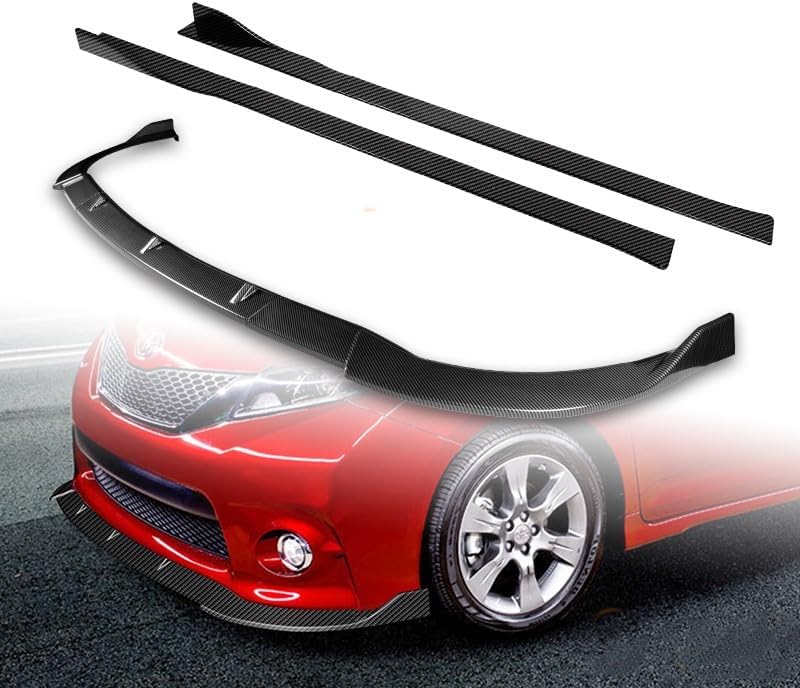 Fitment: ✅Fit for 2011 - 2017 Toyota Sienna SE Model Only DESCRIPTION: 💯Brand new never used or installed 💎High-Quality control ABS material ⭐Create the stylish look of your vehicle 💡Side Skirt Rocker Splitters Diffuser is Universal Fit for Most Cars, Dimension: 59" x 4" or 86" X 4" ⏩About Side Skirt: Please measure the desired location to make sure it will fit your liking before you purchase⏪ 📢This product recommends PROFESSIONAL INSTALLATIONPACKAGE INCLUDES: 1 X 3pcs Front Body Kit Bumper Lip 1 X 6pcs Side Skirt Rocker Splitters Diffuser 📢Installation instruction is NOT includedCOLOR: Unpainted Black Painted Black Painted White Painted CarbonWe will give you: 🛍Wide Selection Of Item 🌠Excellent Quality 🚗New Sense Of Driving 🏅For Your Vehicle To Add New Highlights 😎Making Your Vehicle Have More SPORTY or AGGRESSIVE