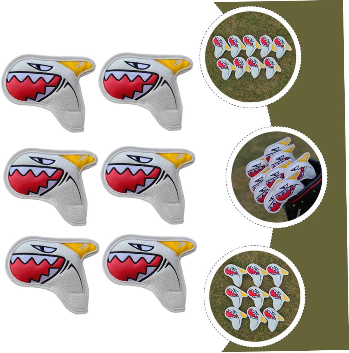 Package List 9 x Putter Covers Characteristics -Product Info:Golf club cover -Material: PU -Prevents damage to clubs during transport. Great gifts for friends who love sports golfs . -Designed to fit most clubs, and protect them from the dings and damage that occur during play or travel golf cover. -Made of , the club cover is durable and use. -It can reduce vibration, to ensure the putter covers do not fall off and well stitched golf iron covers. -Mallet shaped putter cover keeps your golfs investment safe while club is being stored, carried in your bag, or being transported on the course golf cover.Goods Descriptiongolf supplies It can provide maximum from damage due to the clattering of clubs with each other.Convenient Iron is not only helpful for sports, but also a great gift for your friends and family who like golfs. cover golf The adorable pattern design shows its usefulness and your attitude towards life