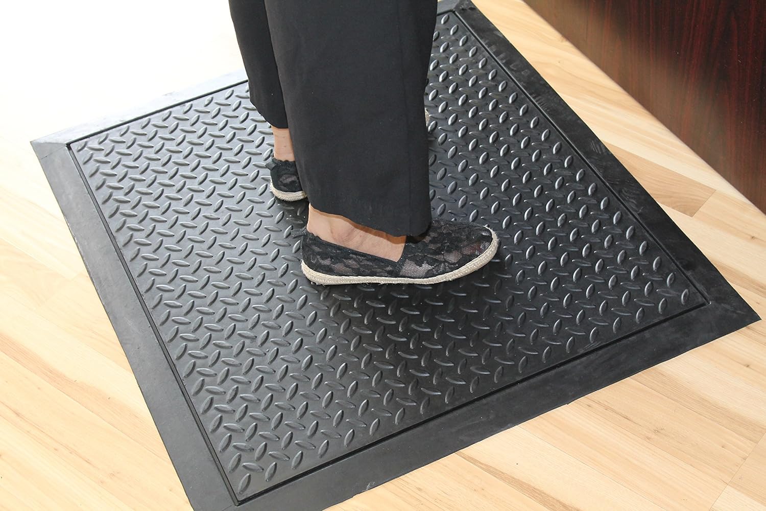 Comfort mats are widely used to cover areas in industries & sales points. Mats with four side edging can be used as a single piece for individual purposes like workshops, assembling areas & sales points. The Mat has no-trip beveled edges.