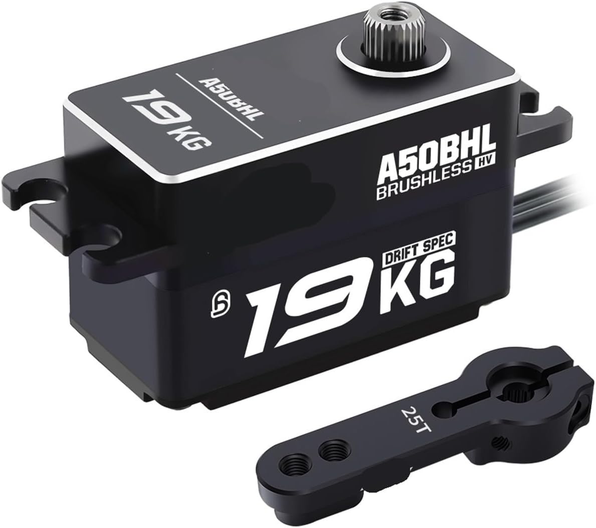 ServosSpecificationProduct number: A50BHLOperating voltage: 4.8-8.4 VOperation speed: 0.095 sec/60°@6.0VOperation speed: 0.083 seconds/60°@7.4VOperation speed: 0.073 seconds/60°@8.4VStall Torque: 16 kg-cm (222 oz-in) @ 6.0VStall Torque: 18 kg-cm (250 oz-in) @ 7.4VStall Torque: 19 kg-cm (264 oz-in) @ 8.4VEquipment: SteelMotor: BLSDimensions: 40.8*20.2*26.5 mm (1.60 x 0.79 x 1.04 in)Weight: 51 gConnecting wire: JR 180 mm