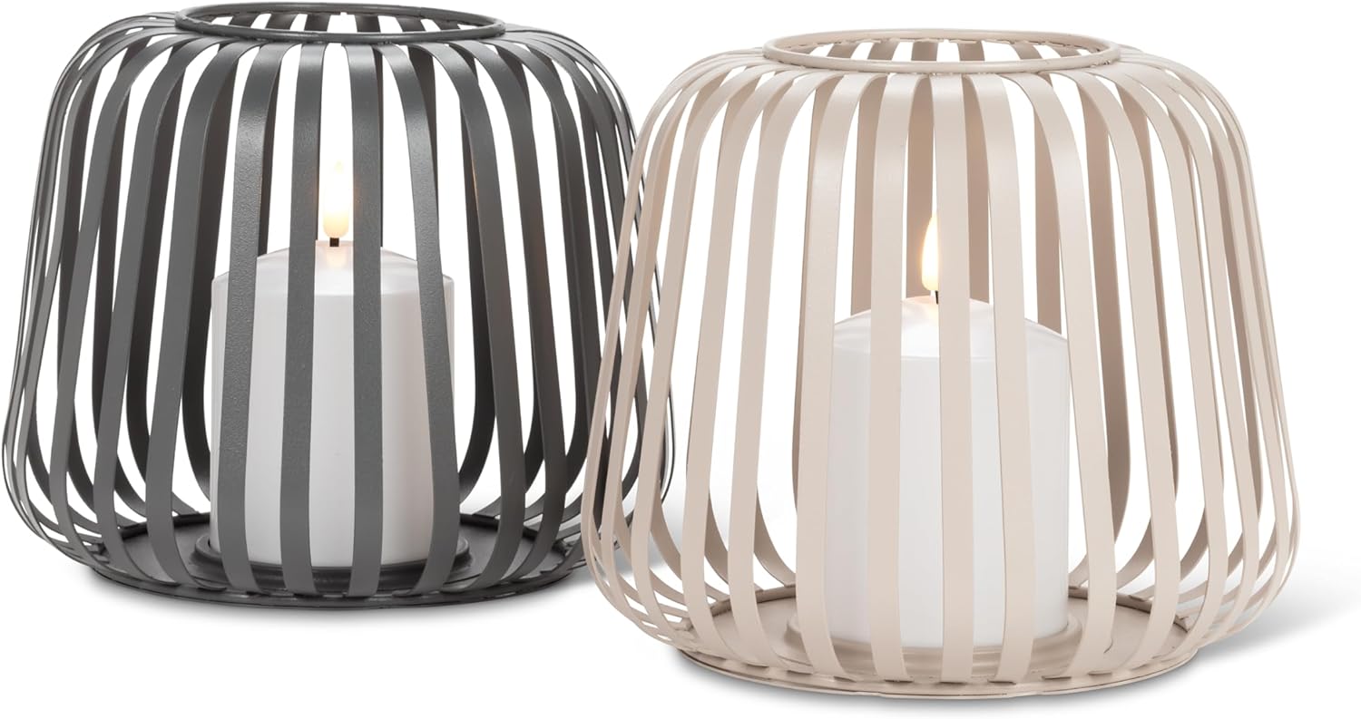 Add atmosphere, ambience and light just about anywhere with a Small Cage Lantern with LED Candle. The lantern's frame is crafted from sturdy metal. Inside, an LED candle flickers softly, mimicking the warm glow of a real flame without the risk of melting wax or fire hazards.