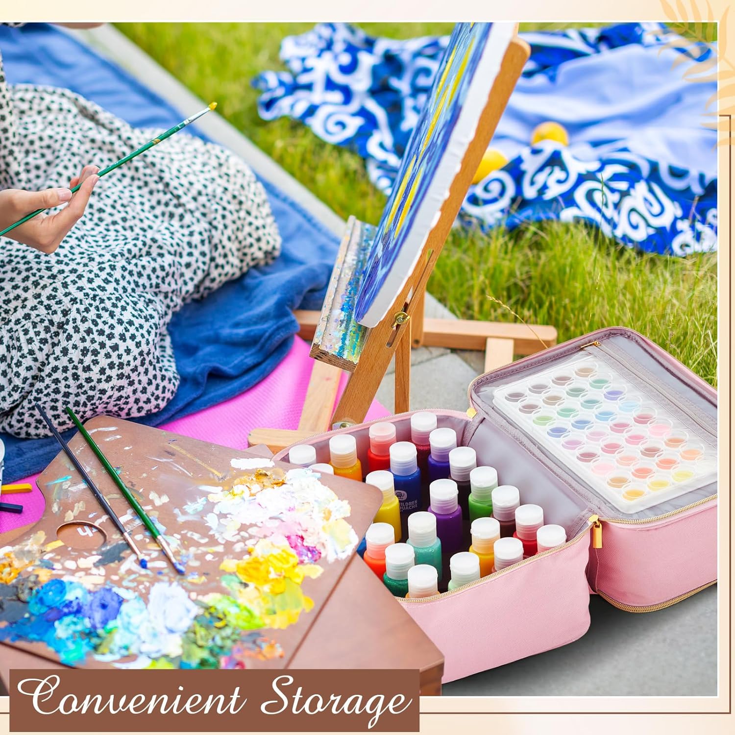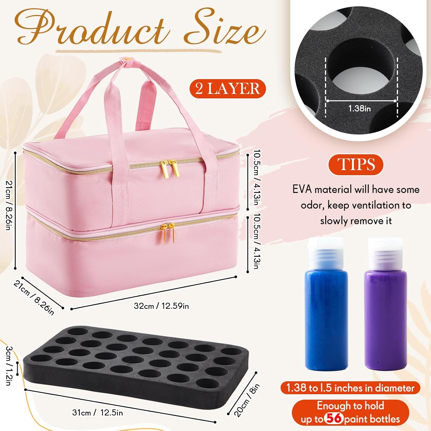 Features: The durable design of the storage bag ensures your paint bottles and other supplies stay protected from any potential damage. It's more than just storage. It's a safety guard for your artistic tools. With its detachable partition design, you can customize your storage preferences for various items. This flexible structure makes this product not only an acrylic paint storage case but also a versatile ink storage case. Specifications: Material: polyester, eva Color: pink Size: outsourcing 12.59 x 8.26 x 8.26 inches/ 32 x 21x 21 cm with inner lining circle diameter of 3.5cm Package includes: 1 x Acrylic paint organizer bag Notes: Manual measurement, please allow slight errors on size. The color may exist a slight difference due to different screen displays.