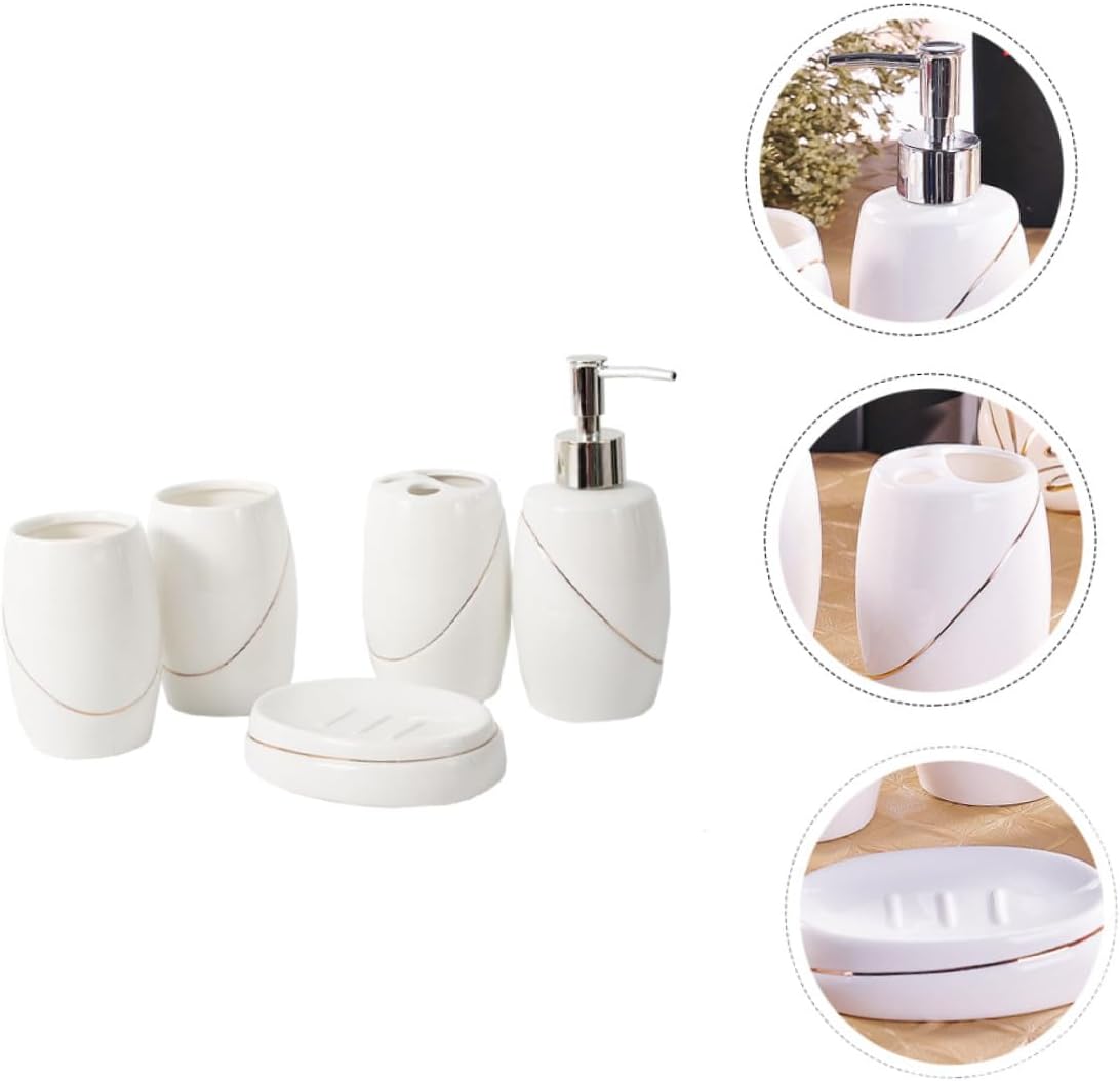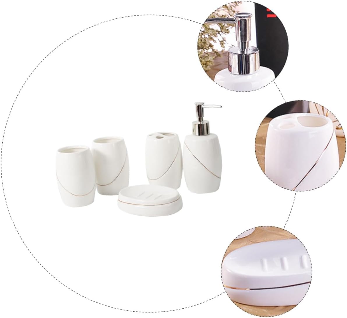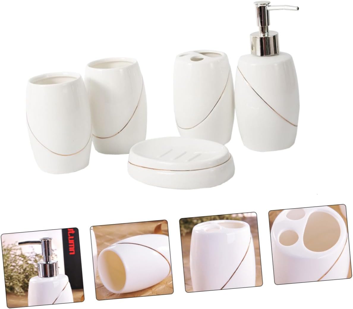 Package Include 1 x sub bottle 1 x toothbrush rack 1 x soap plate 2 x gargle cups Features - Color: White Bathroom Washing Accessory - Packaging size: About 34x24x11cm/13.4x9.4x4.3inch Sanitary Accessory - Material: Ceramics Toothbrush Storage Rack - A must-have accessory for your home, which is convenient and Soap Tray. - Smooth surface, very convenient to clean Toothbrush Holder. - Suitable for the use in the hotel or home Gargle Cup. - The set includes gargle cup, toothbrush rack, soap tray and lotion bottle Bathroom Accessory. - All items are made of , which is and Personal Washing Cup.Goods DescriptionBathroom Accessory Due to the design, they are wonderful for home bathroom use.Toothbrush Storage Rack Are you looking for some personal washing accessories? These items will be a choice.Sanitary Accessory This is a set of sanitary accessories.Toothbrush Holder It helps you keep your soap, toothbrushes and toothpaste clean and tidy