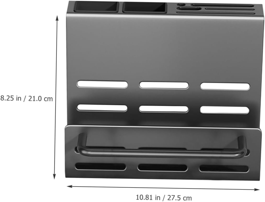 Package Include 1 x tableware rack 1 x hang buckle 2 x spoon fork cups 1 x glue 2 x auxiliary sticker 2 x screws 2 x anchor bolts Characteristics -Color:Grey Wall Cutlery Holder -Size:27.50X21.00X15.00cm/10.81X8.25X5.89in Sturdy Utensil Holder -Material:Carbon steel Chopstick Holders - cutlery of different sizes, holding spoons, forks, chopsticks, and other small utensils, and store a cutting board Utensil Holder For Storage. -There are drain holes below of the utensil holder for utensil to dry, and can draining water conveniently Kitchen Spoon Container. - You can also install this cutlery organizer on wall, which can help to save desktop space Kitchen Decor. -Contemporary look blends well with modern design style, which is decorative. Can be used as a housewarming present to your friends, they will be very happy Utensil Holder For Spoons. -Wall Chopstick Holder has simple and fashion design, elegant and beautiful, it will not take much room Kitchen Accessory.Goods DescriptionCutting Board Holder Simple design, multi-functional, it can be used to store cutters, chopsticks, spoons, forks and other kitchen utensils.Sturdy Utensil Holder This kitchen Chopstick Holder, made of reliable material, stable and .Cutlery Holder The bottom with the draining hole design, easily discharge water.Kitchen Decor It is very convenient for you
