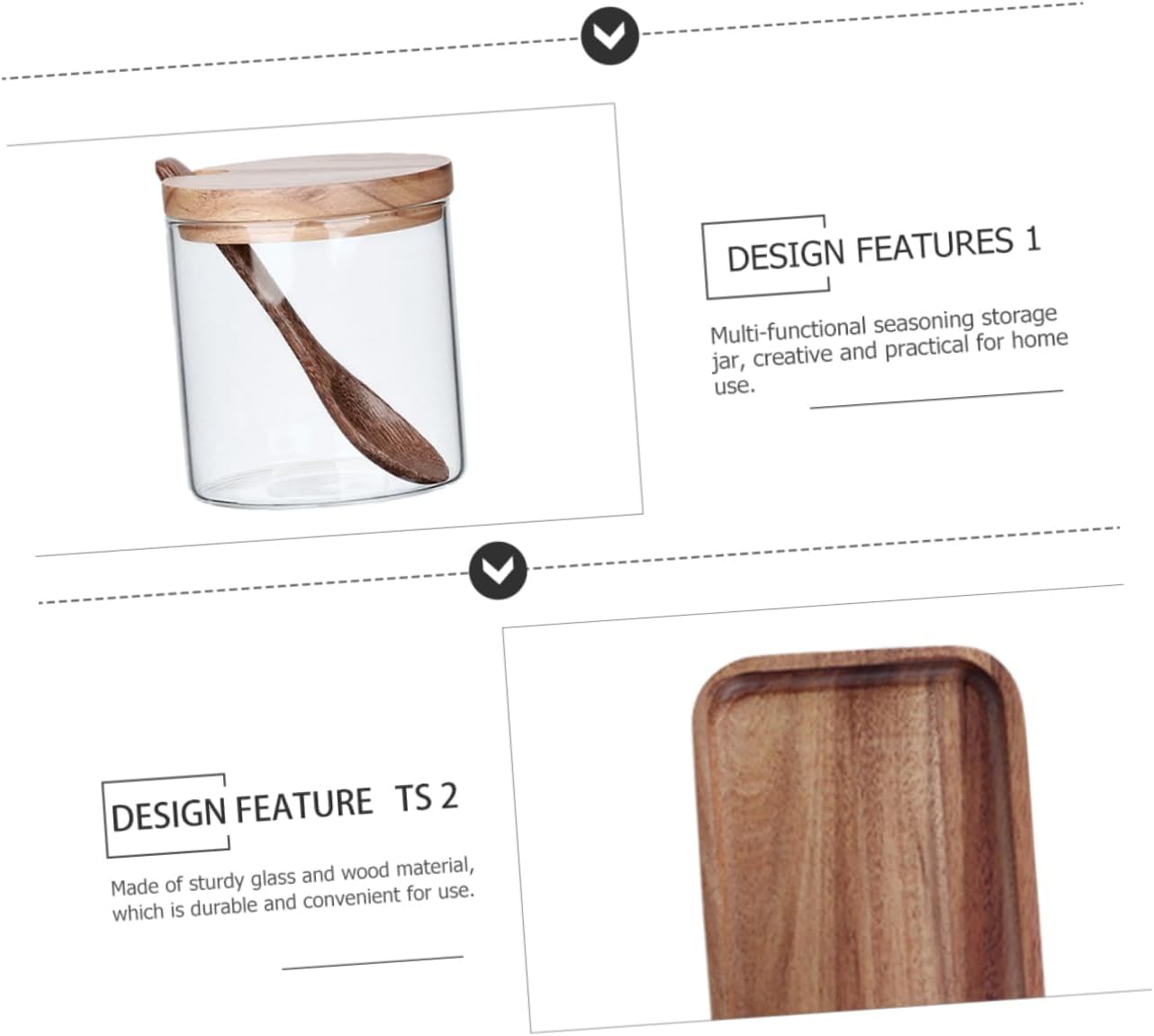 Package List 3 x Seasoning Jars with Lids 3 x Spoons 1 x Tray Characteristics -Material: Wood, Glass Seasoning Jar Kit -Color: As Shown Salt Storage Holder -Size: 28.00X10.50X9.00cm/11.00X4.13X3.54in Lidded Condiment Jar -The shape is simple, beautiful and generous to match well with your kitchenware Spices Jar. -It is suitable for condiments, food materials, other powders and liquids Glass Condiment Storage Jar. -Healthy material, safer to use, easy to open, easy to use and wash Glass Condiment Jar. -An elegant appearance must add color to your kitchen and show your taste Clear Seasoning Jar. -A necessary and nice kitchen product, to make cooking more enjoyable Spice Storage Jar.Goods InformationSeasoning Jar Kit This is a seasoning storage jar, made of glass and wood material for to use.Seasoning Canister This seasoning box is definitely a.Condiment Containers for serving seasoning storage or some condiment storage.Spice Storage Holder It is very space-saving and can make your kitchen cleaner and tidier