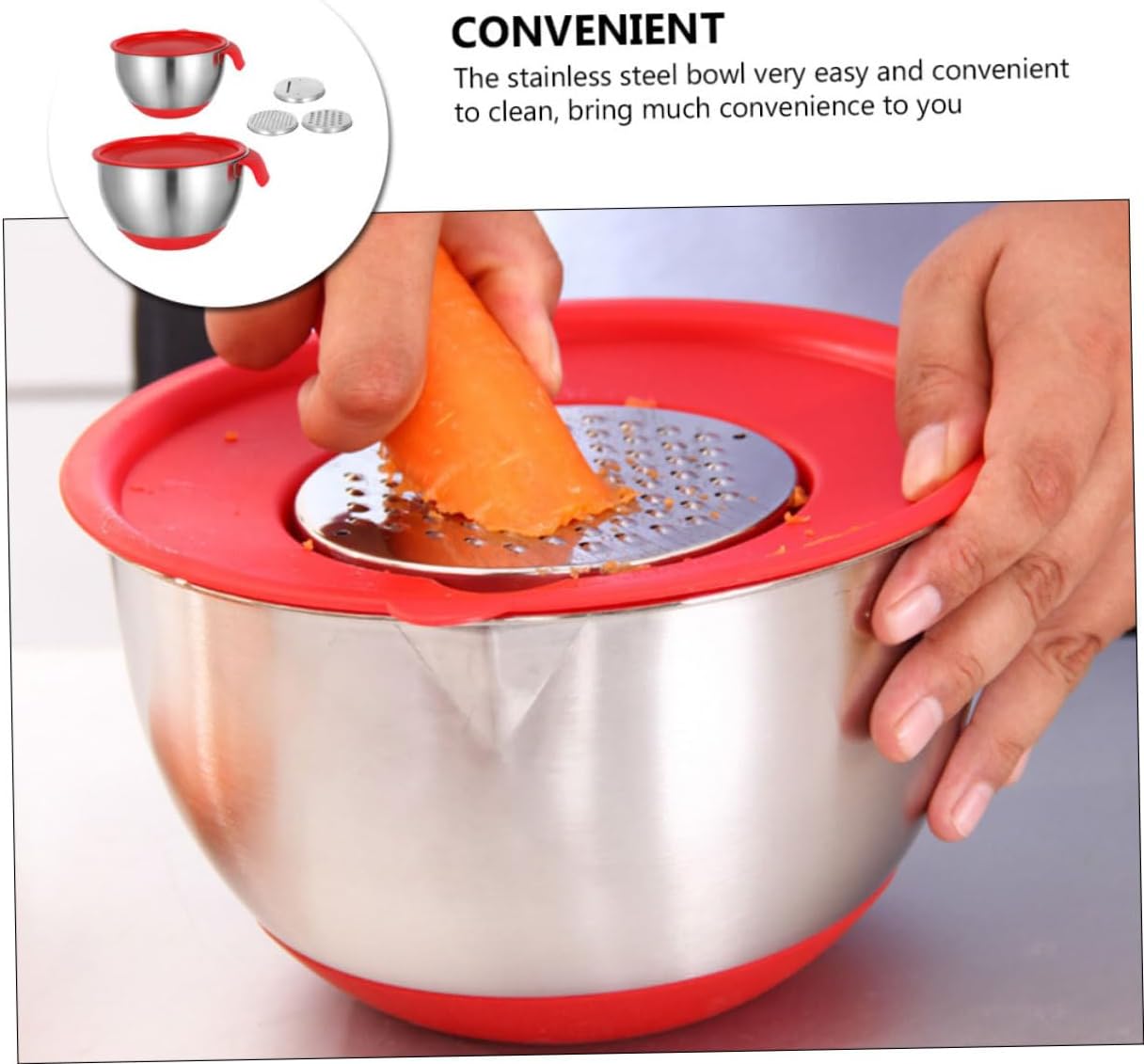 Package List 1 x mixing bowl(18cm) 1 x mixing bowl(20cm) 2 x covers 3 x graters Characteristics -Size:18.00X18.00X10.50cm/7.07X7.07X4.13in -Material:Stainless steel, silicone -Product Info:Stainless steel egg beating basin -Color:Assorted Color -Size:20.00X20.00X12.00cm/7.86X7.86X4.72in - This stainless steel bowl comes with simple shape, perfect for the fruit, salad, dessert or snack sharing bowls. - The bowl is made of sturdy material, safe and , which could be used for a very long time. - The bowl is very suitable for family gatherings, parties, weddings, bars and restaurants, etc batter bowl. - The salad bowl, making it smooth to touch, easy to clean, practical and beautiful baking mixing bowl. - The excellent workmanship of our bowl will bring you a . This incredible mixing bowl is an easy product to clean mixing salad bowl.Goods Informationsalad mixing bowls The bowl is made of stainless steel, silicone material, which is and practical for the lasting use.multi purpose mixing bowl If you are looking for a practical Salad Bowl, this product will be a wise choice for you.mixing bowl Perfect for sharing snacks, salad, dessert and fruit with guests